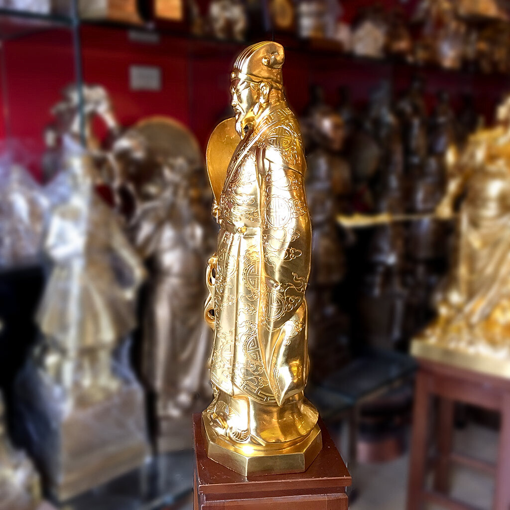 - Chất liệu cao cấp: Nguyên liệu chính tạo nên Quà Tặng Phong Thủy Tượng Khổng Minh chính là đồng, là kim loại quý thứ 3 trong tự nhiên. Đây là kim loại mềm, uốn dẻo tốt và được tinh luyện ở khoảng 1000°C có tính chịu nhiệt tốt, bền đẹp khi để ngoài môi trường.