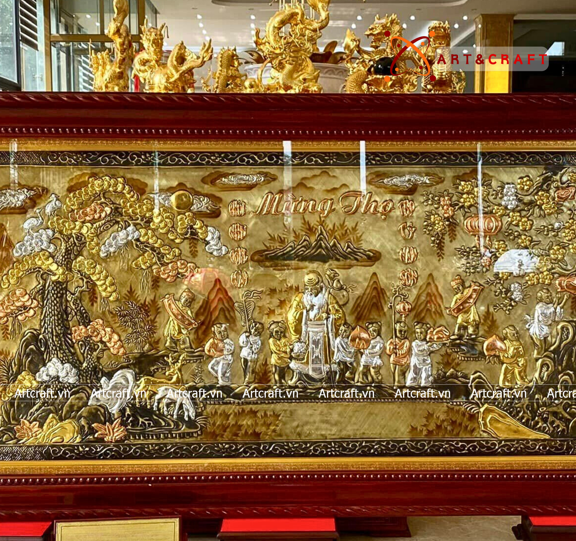 + Đặt tại nơi thờ cúng: Tranh Mừng Thọ đặt tại phòng thờ cho thấy đạo hiếu, tấm lòng của con cháu với các bậc tổ tiên. Tranh cũng giúp không gian thờ thêm phần trang trọng, ấm cúng.