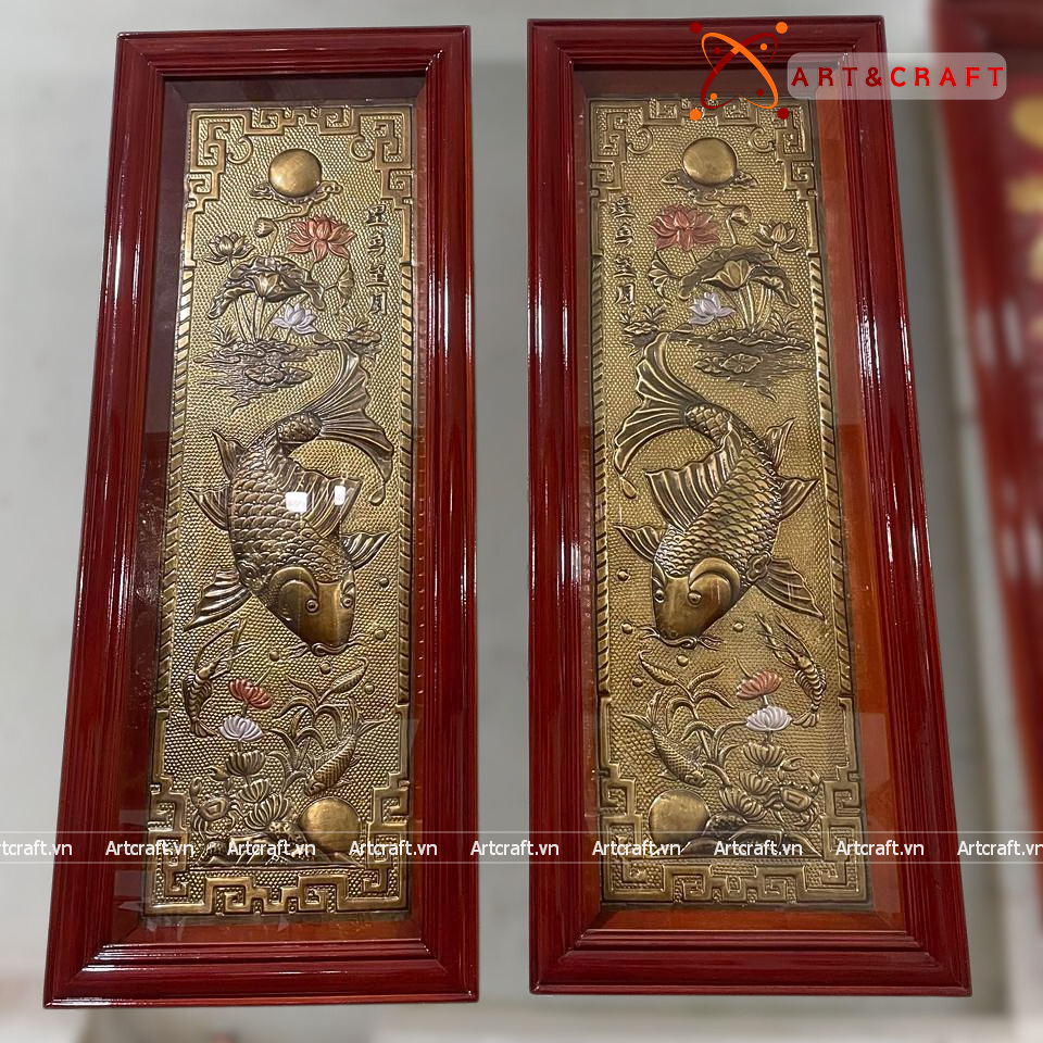 - Họa tiết tinh xảo: Quà Tặng Phong Thủy Tranh Cá Chép Trông Trăng được thúc chạm tinh tế với hình tượng đôi cá chép đang vọng nguyệt cùng với khung hoa lá xung quanh tạo nên bức tranh phong thủy đẹp mắt.