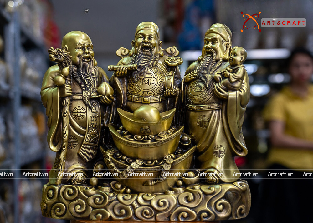 - Họa tiết tinh xảo: Quà Tặng Phong Thủy Tượng Phúc Lộc Thọ được đúc chạm tinh tế thể hiện được thần thái, sự vui tươi, hoan hỉ của ba ông Phúc - Lộc - Thọ.