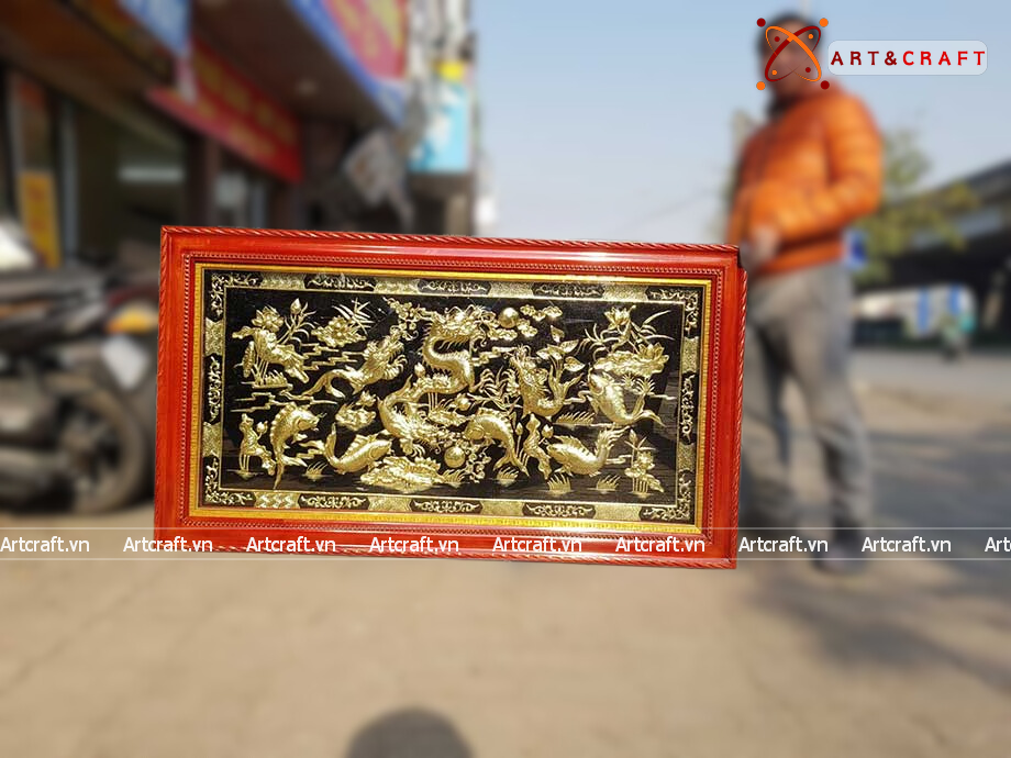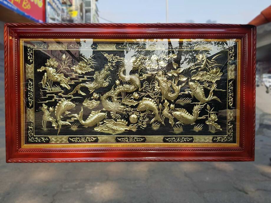 - Họa tiết tinh xảo: Quà Tặng Sếp Tranh Cá Chép Hóa Rồng được thúc chạm tinh xảo với hình tượng hai linh vật cá chép và rồng biểu hiện một bức tranh sinh động về quá trình vươn lên trong cuộc sống.