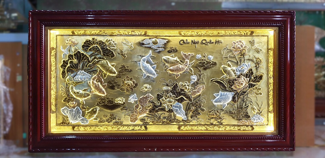 - Chất liệu cao cấp: Nguyên liệu chính tạo nên Tranh Cửu Ngư Quần Hội chính là đồng, là kim loại quý thứ 3 trong tự nhiên. Đây là kim loại mềm, uốn dẻo tốt và được tinh luyện ở khoảng 1000°C có tính chịu nhiệt tốt, bền đẹp khi để ngoài môi trường.