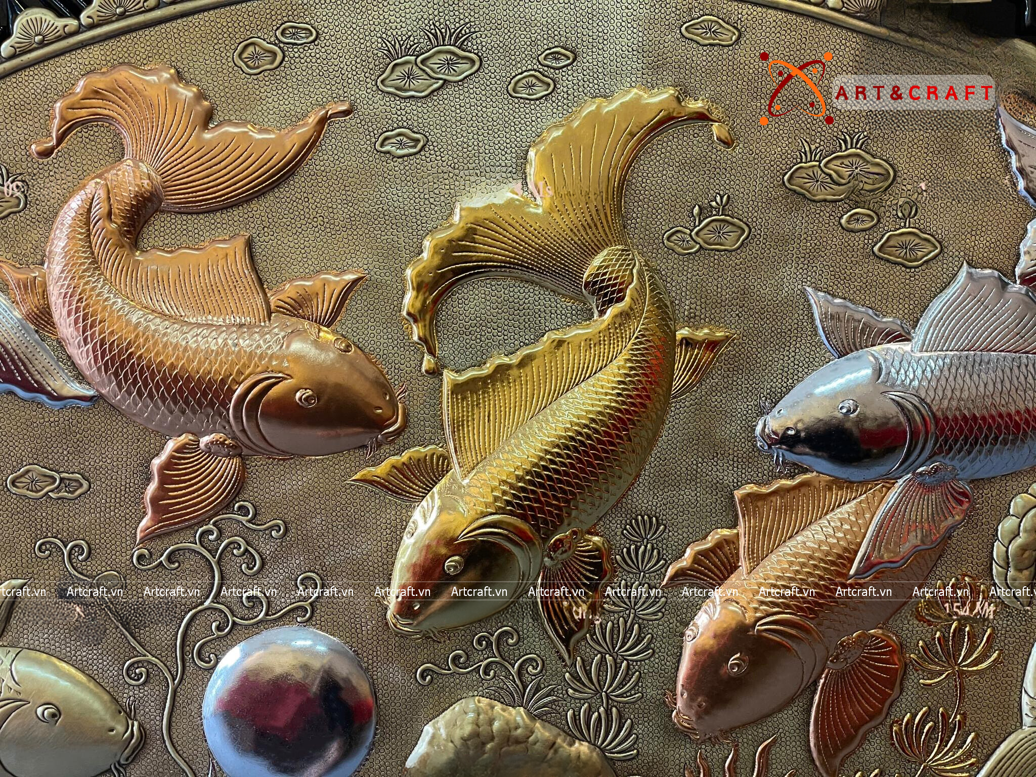 - Chất liệu cao cấp: Nguyên liệu chính tạo nên Tranh Cửu Ngư Quần Hội chính là đồng, là kim loại quý thứ 3 trong tự nhiên. Đây là kim loại mềm, uốn dẻo tốt và được tinh luyện ở khoảng 1000°C có tính chịu nhiệt tốt, bền đẹp khi để ngoài môi trường.