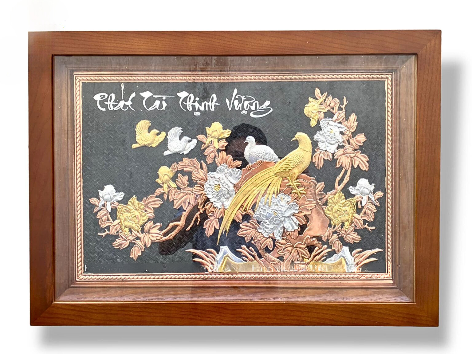 - Chất liệu cao cấp: Nguyên liệu chính tạo nên Quà Tặng Tranh Vinh Hoa Phú Quý chính là đồng, là kim loại quý thứ 3 trong tự nhiên. Đây là kim loại mềm, uốn dẻo tốt và được tinh luyện ở khoảng 1000°C có tính chịu nhiệt tốt, bền đẹp khi để ngoài môi trường.
