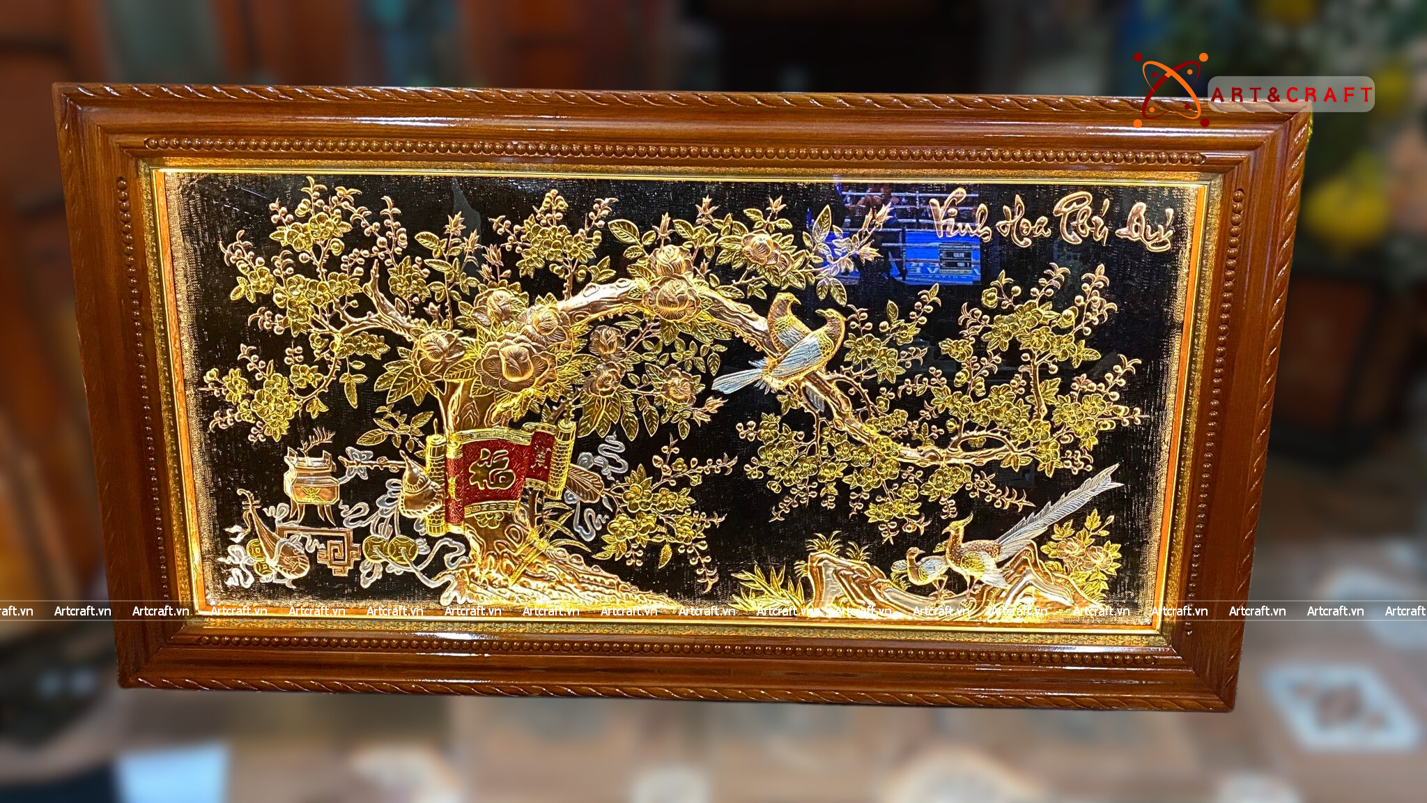 - Độc đáo nhiều ý nghĩa: Quà Tặng Tranh Vinh Hoa Phú Quý là một trong những quà tặng cao cấp có tính phong thủy cao. Quà Tặng Tranh Vinh Hoa Phú Quý thể hiện một cuộc sống giàu sang, con đàn cháu đống, đầy đủ "vinh hoa phú quý".