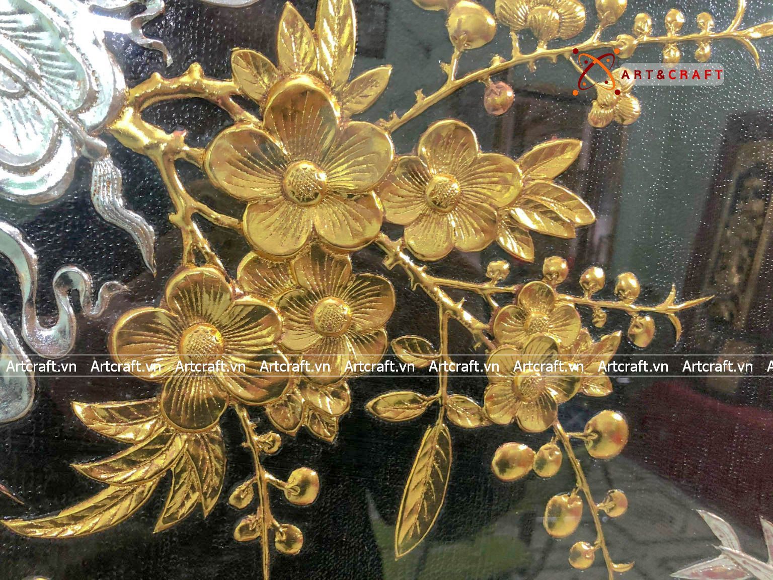 - Họa tiết tinh xảo: Quà Tặng Tranh Vinh Hoa Phú Quý được thúc chạm tinh xảo với hình tượng từng đôi chim và cành mai vàng, cuốn thư, đỉnh đồng tạo nên bức tranh sung túc, hạnh phúc.