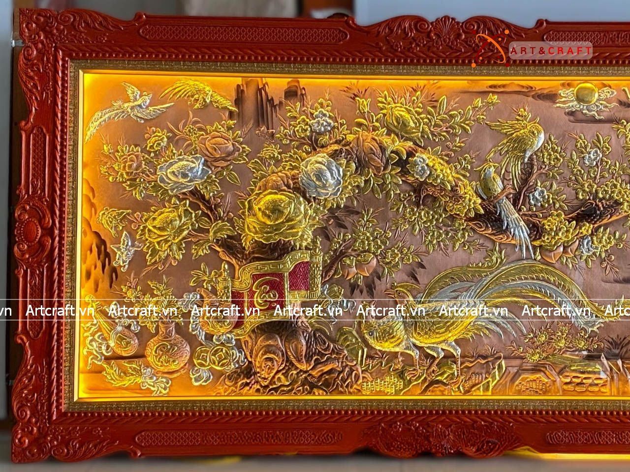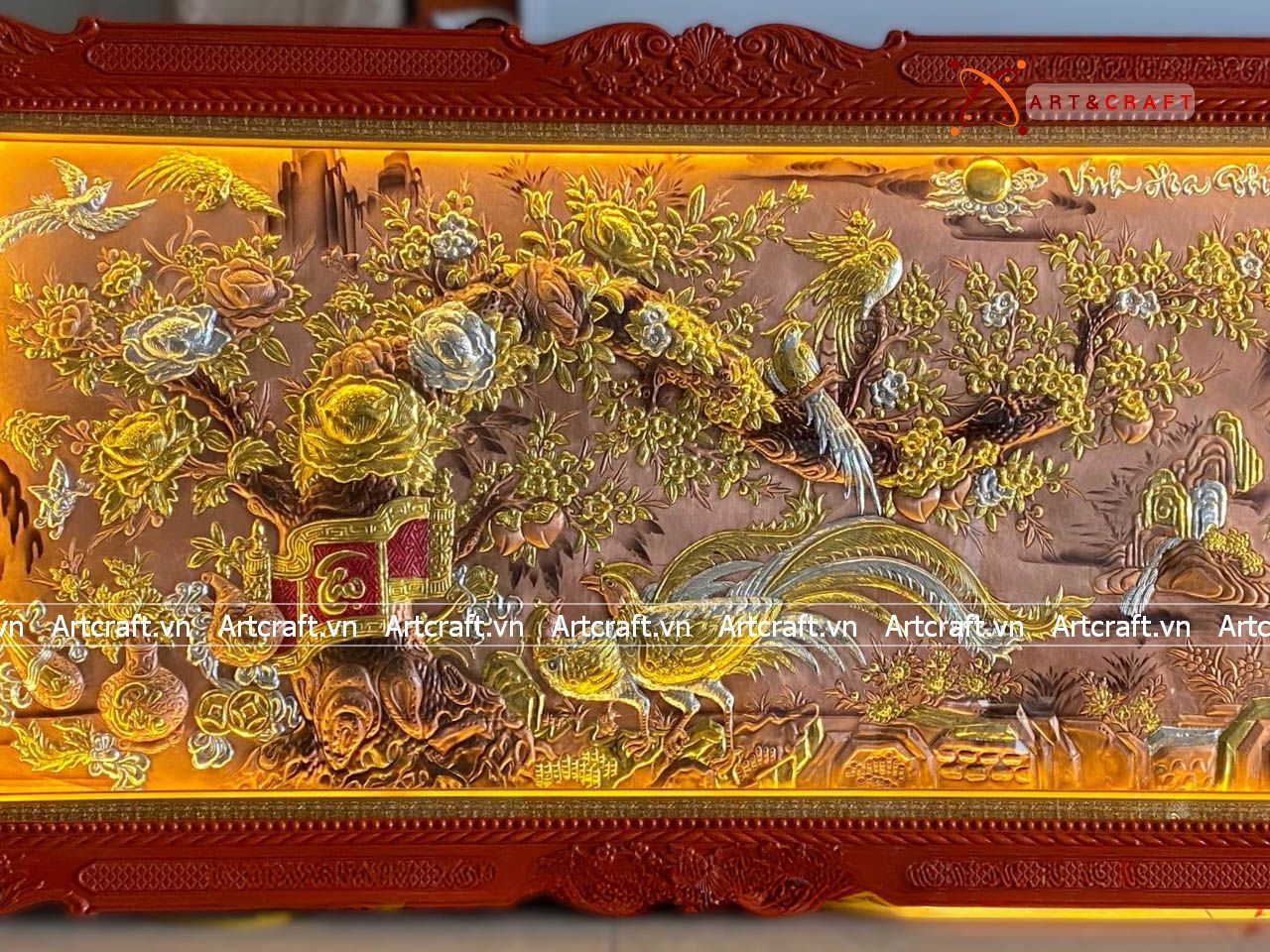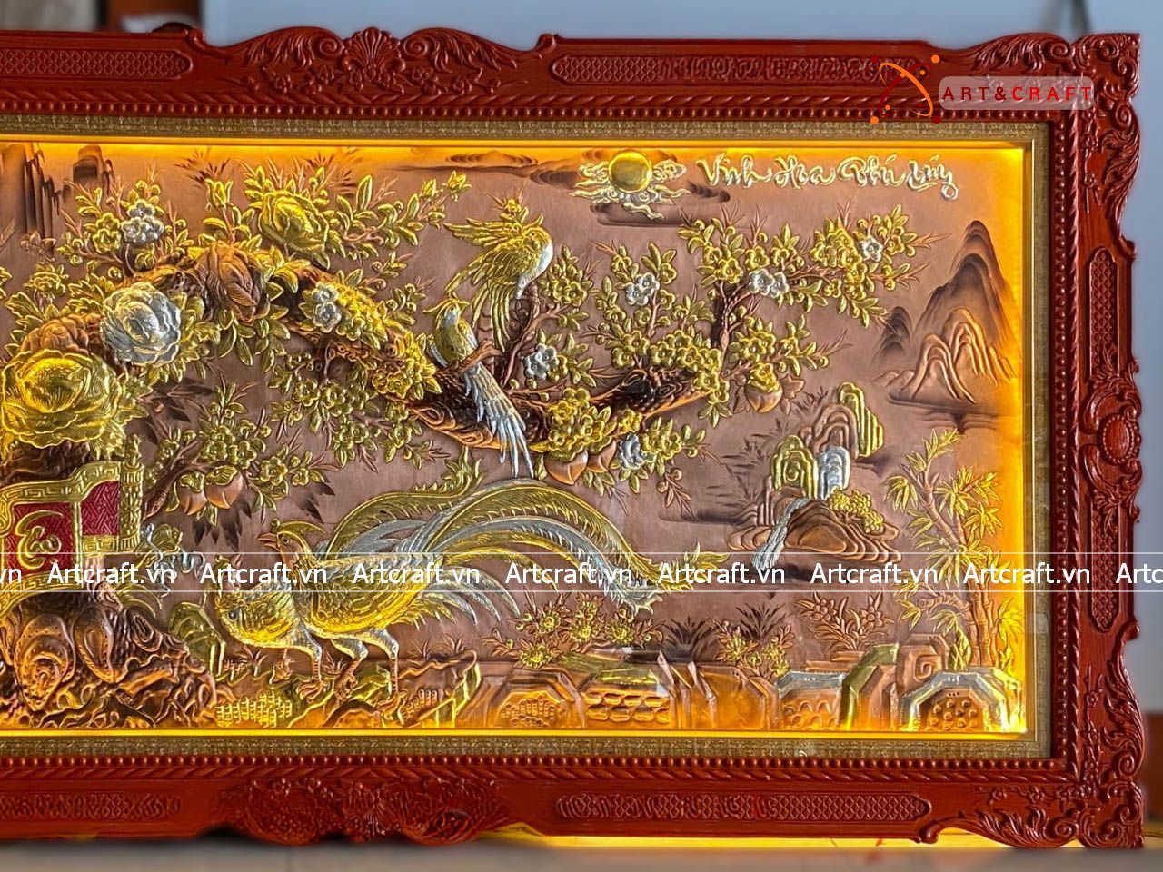 - Chất liệu cao cấp: Nguyên liệu chính tạo nên Quà Tặng Tranh Vinh Hoa Phú Quý chính là đồng, là kim loại quý thứ 3 trong tự nhiên. Đây là kim loại mềm, uốn dẻo tốt và được tinh luyện ở khoảng 1000°C có tính chịu nhiệt tốt, bền đẹp khi để ngoài môi trường.