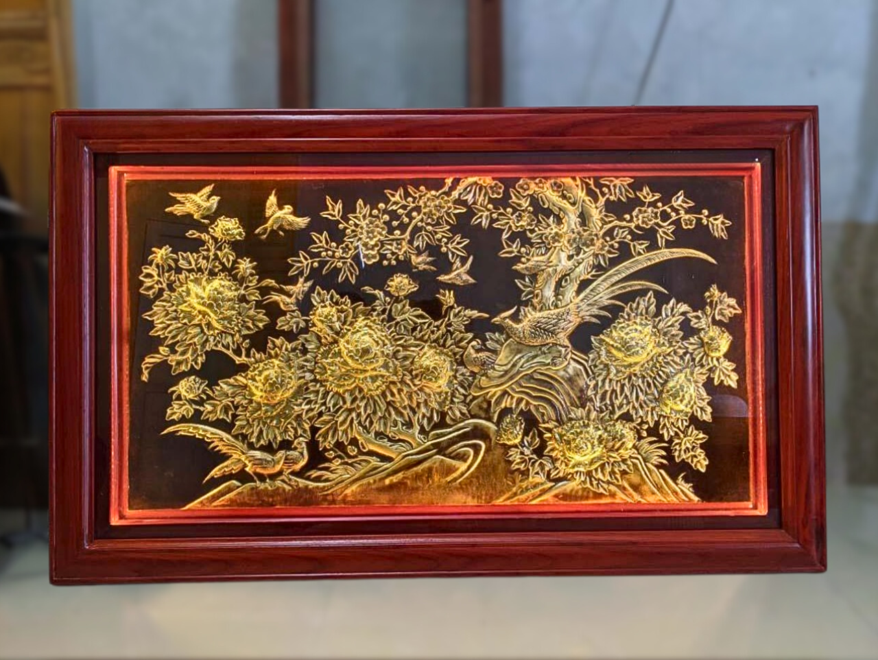 - Chất liệu cao cấp: Nguyên liệu chính tạo nên Quà Tặng Tranh Vinh Hoa Phú Quý chính là đồng, là kim loại quý thứ 3 trong tự nhiên. Đây là kim loại mềm, uốn dẻo tốt và được tinh luyện ở khoảng 1000°C có tính chịu nhiệt tốt, bền đẹp khi để ngoài môi trường.
