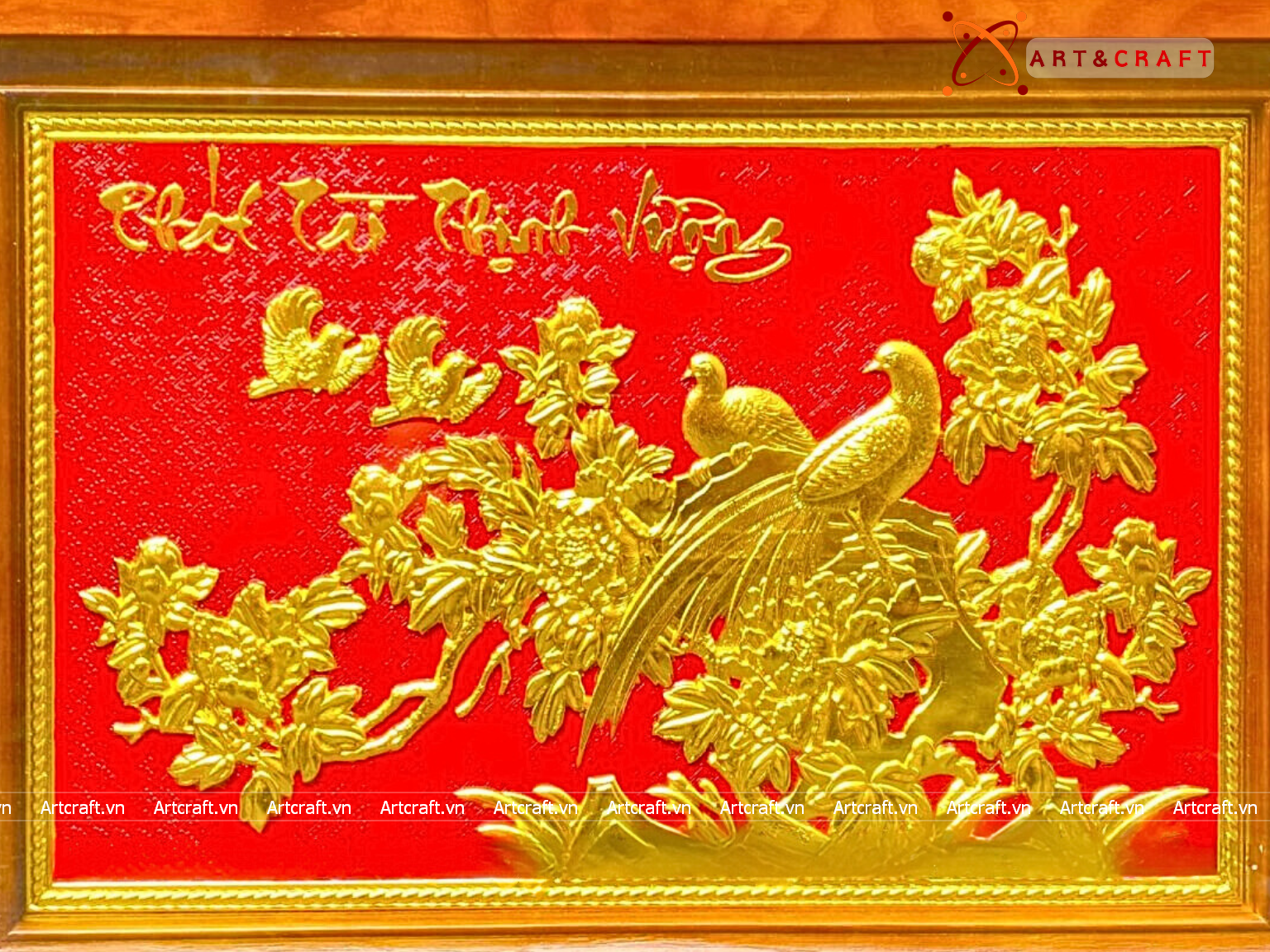 - Họa tiết tinh xảo: Quà Tặng Tranh Vinh Hoa Phú Quý được thúc chạm tinh xảo với hình tượng từng đôi chim và cành mai vàng, cuốn thư, đỉnh đồng tạo nên bức tranh sung túc, hạnh phúc.