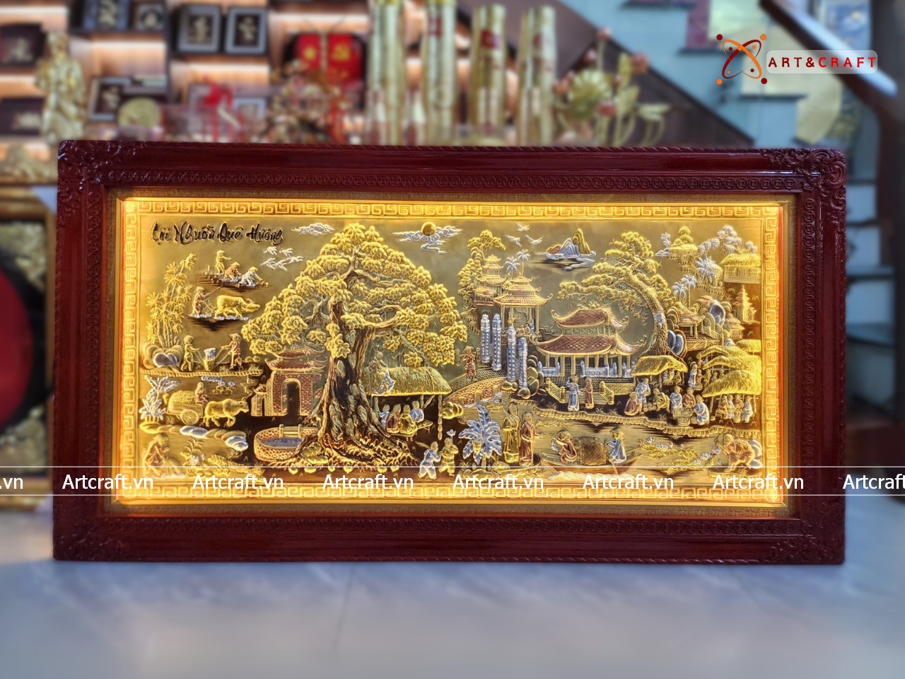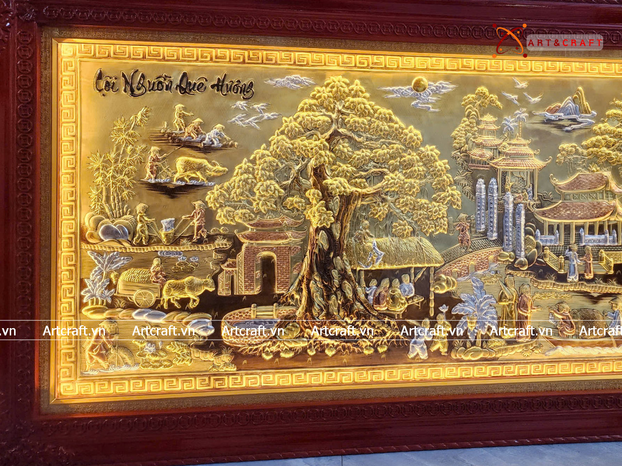 Quà Tân Gia Tranh đồng Cuội Nguồn Quê Hương kích thước 230x120cm dát tam khí