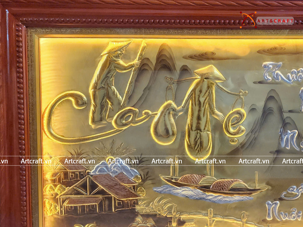 - Họa tiết tinh xảo: Tấm đồng được dát mỏng thúc chạm nổi chữ Cha Mẹ thư pháp mang tính nghệ thuật sống động.