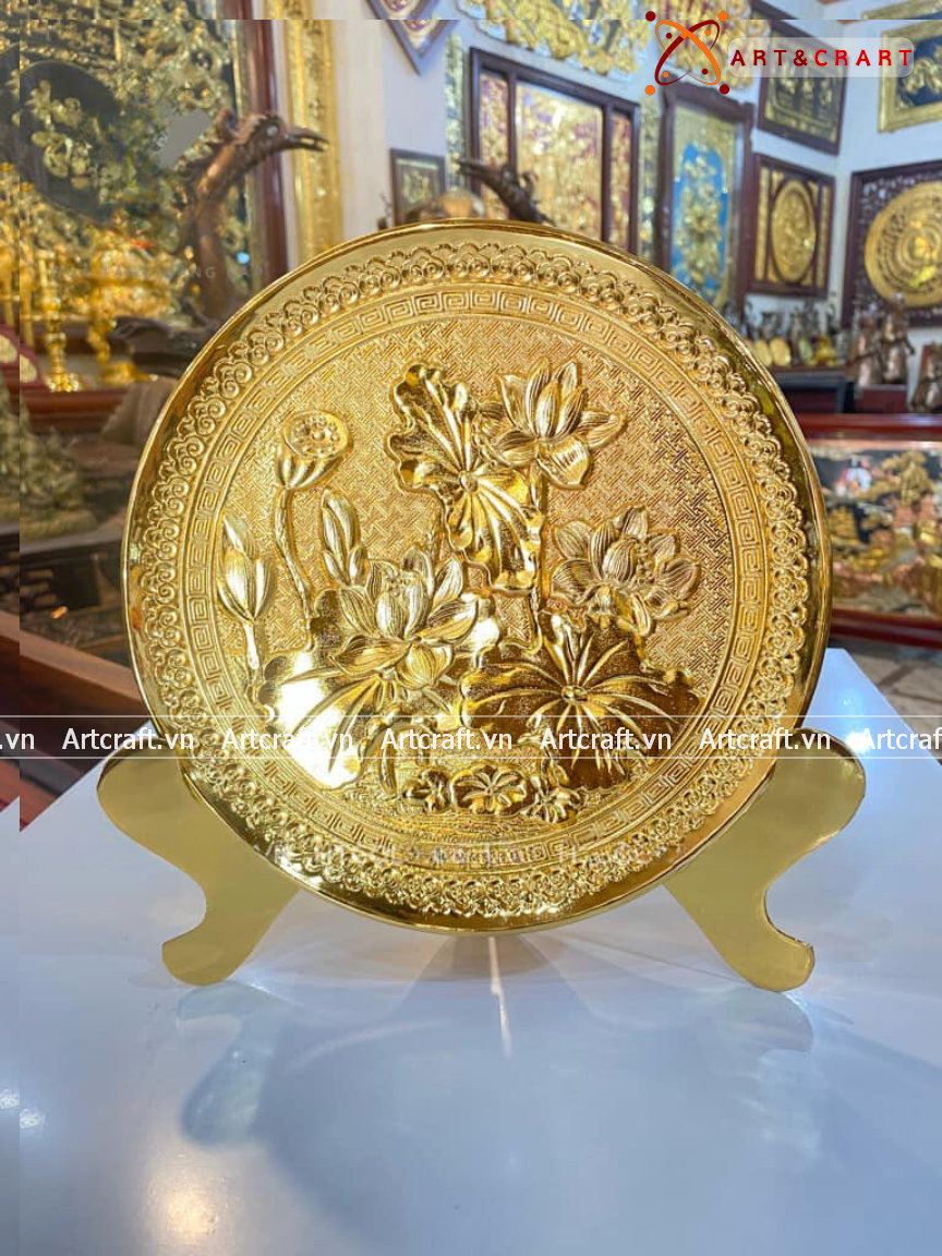 - Họa tiết tinh xảo: Tấm đồng được dát mỏng thúc chạm thể hiện được hết nét đẹp của biểu tượng Hoa Sen giản dị nhưng vô cùng cao quý.