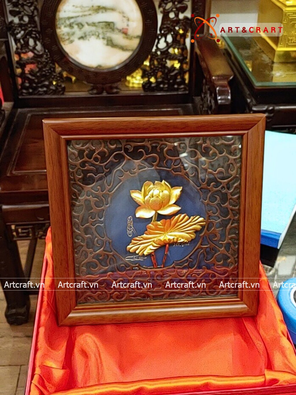 - Họa tiết tinh xảo: Tấm đồng được dát mỏng thúc chạm thể hiện được hết nét đẹp của biểu tượng Hoa Sen giản dị nhưng vô cùng cao quý.