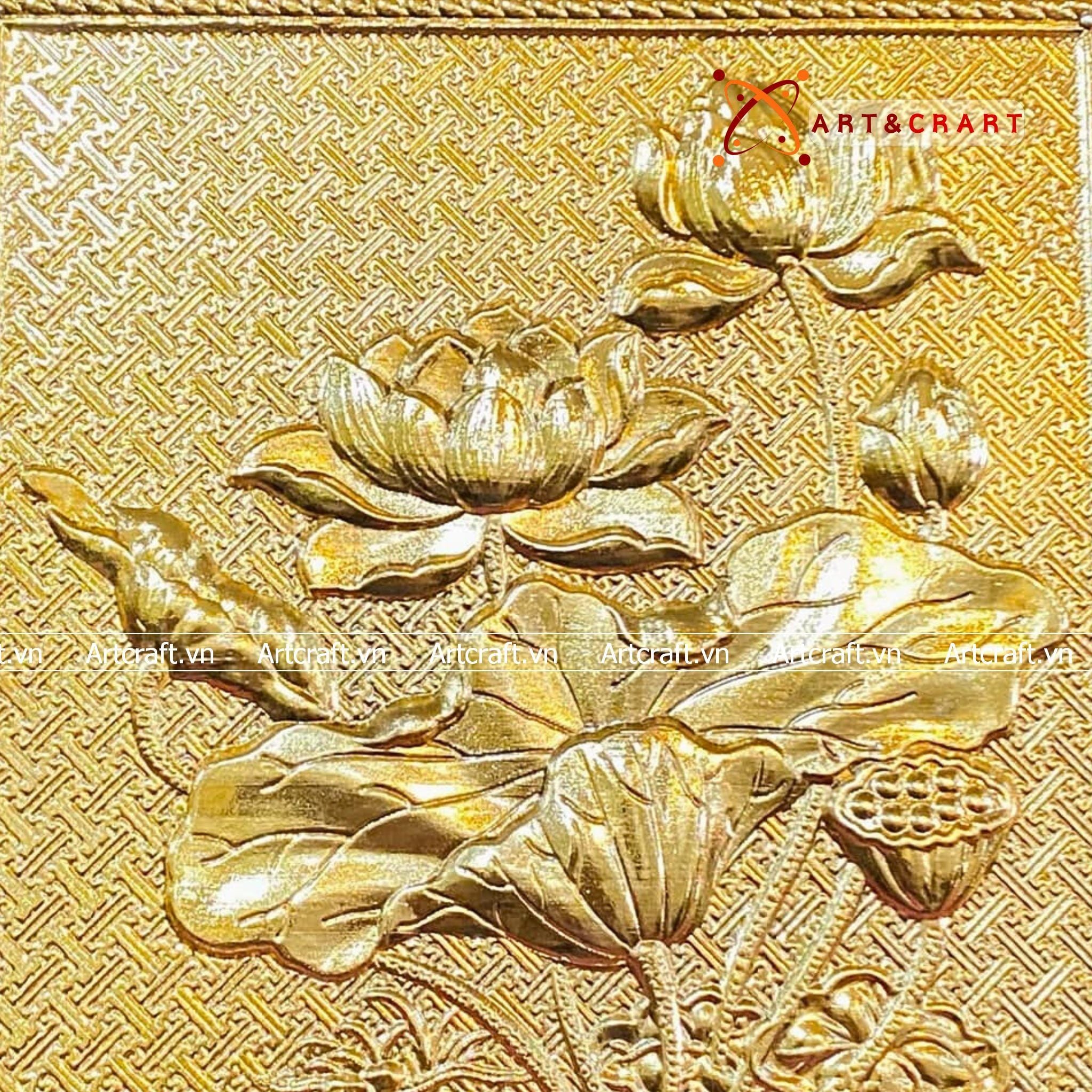 - Họa tiết tinh xảo: Tấm đồng được dát mỏng thúc chạm thể hiện được hết nét đẹp của biểu tượng Hoa Sen giản dị nhưng vô cùng cao quý.