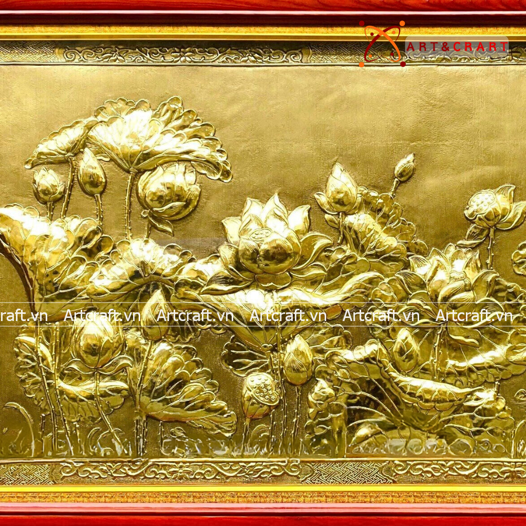 - Họa tiết tinh xảo: Tấm đồng được dát mỏng thúc chạm thể hiện được hết nét đẹp của biểu tượng Hoa Sen giản dị nhưng vô cùng cao quý.