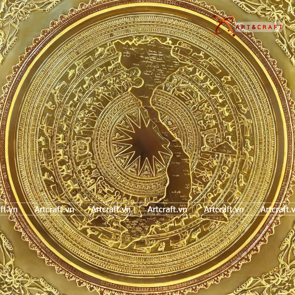 - Họa tiết tinh xảo: Tấm đồng được dát mỏng thúc chạm từng chi tiết nhỏ với các biểu tượng chim lạc, cảnh săn bắn, mặt trời miêu tả đỉnh cao nền văn minh Đông Sơn Âu Lạc dân tộc ta.