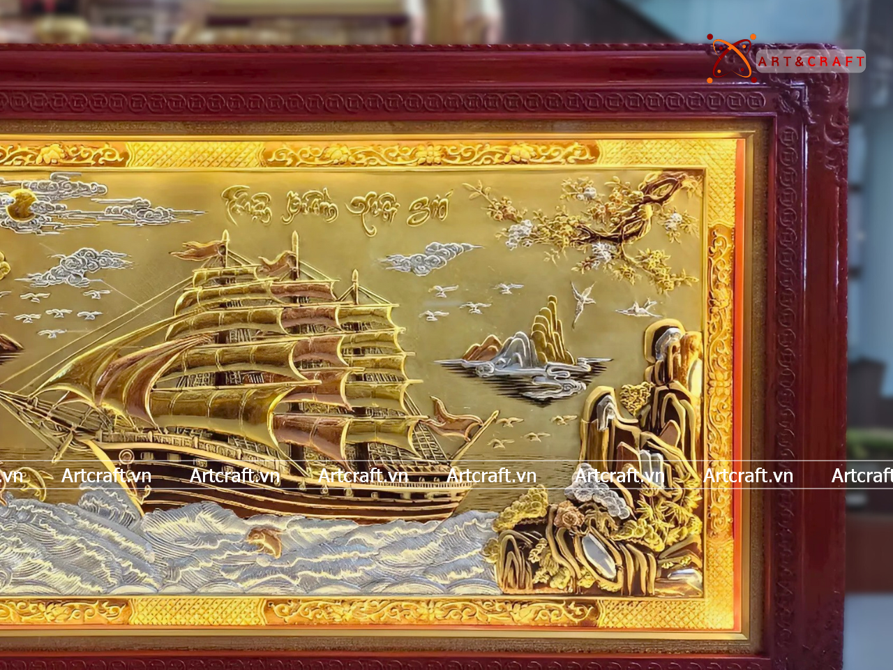 - Họa tiết tinh xảo: Tấm đồng được dát mỏng thúc chạm từng chi tiết nhỏ. Cảnh Thuyền và Biển được chế tác sống động thể hiện bức tranh thiên nhiên vừa chân thật vừa hùng vĩ.