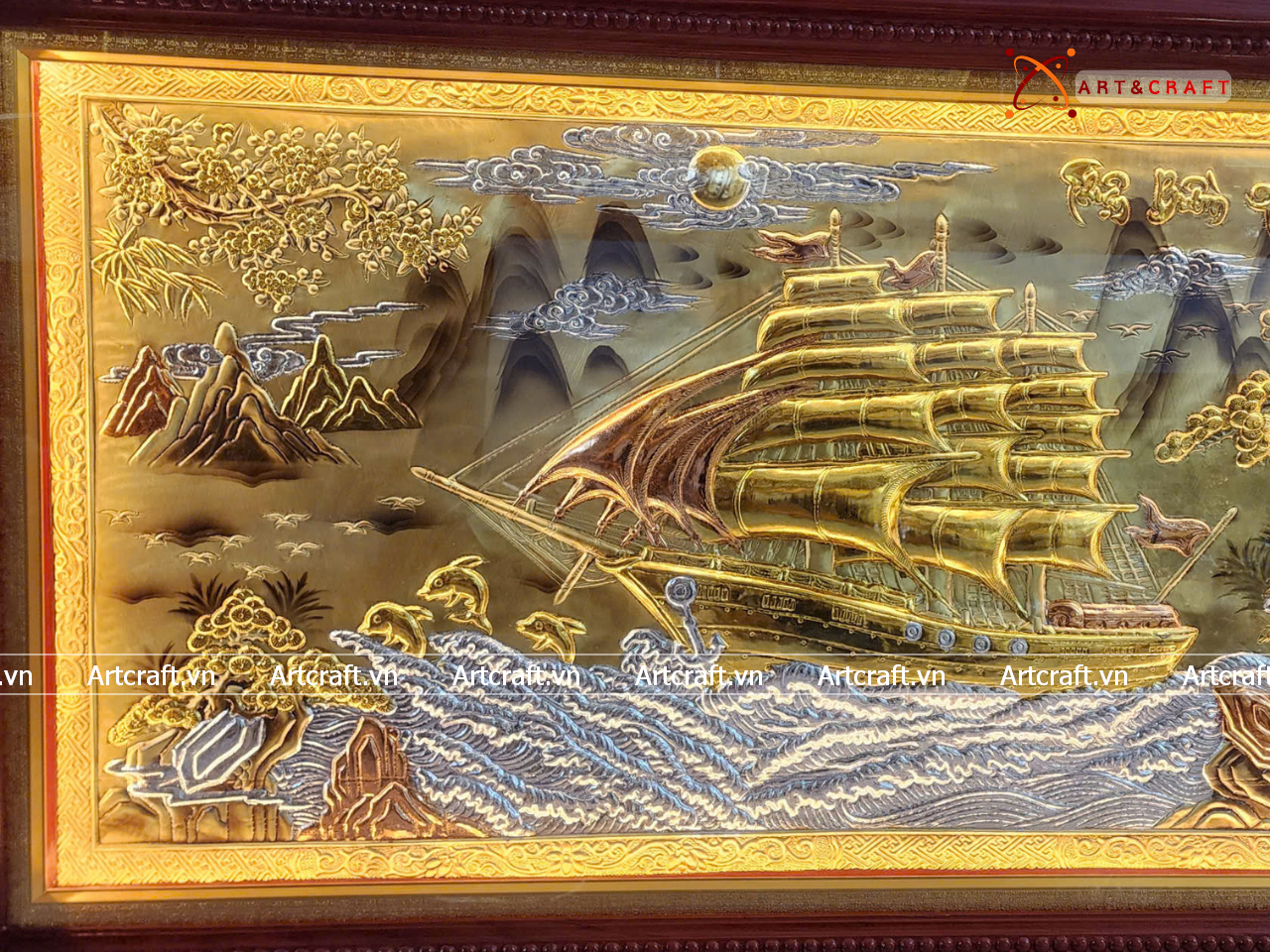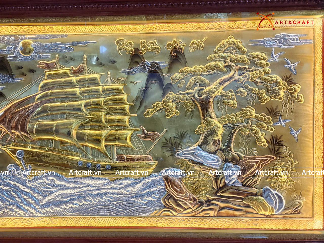- Họa tiết tinh xảo: Tấm đồng được dát mỏng thúc chạm từng chi tiết nhỏ. Cảnh Thuyền và Biển được chế tác sống động thể hiện bức tranh thiên nhiên vừa chân thật vừa hùng vĩ.