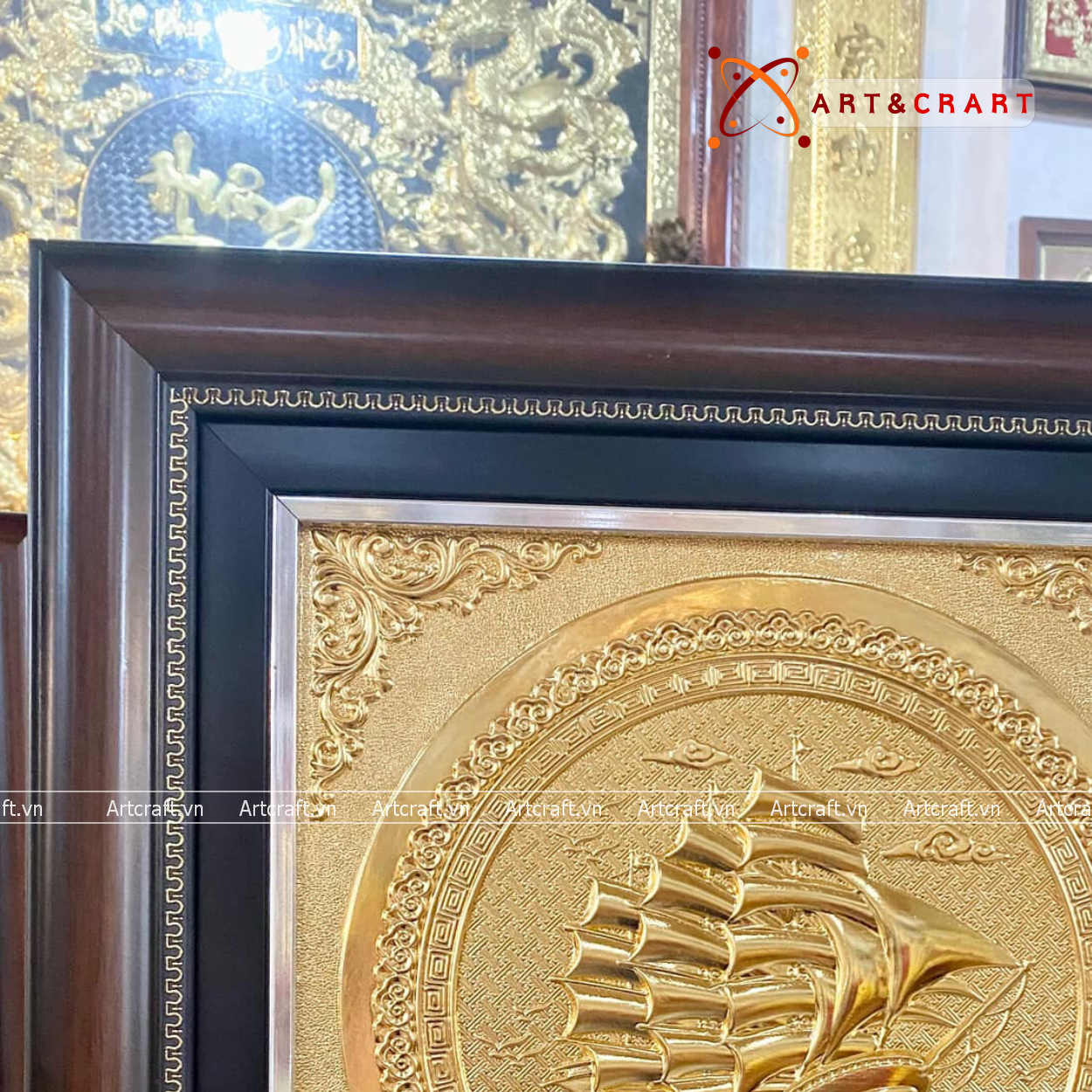 - Họa tiết tinh xảo: Tấm đồng được dát mỏng thúc chạm từng chi tiết nhỏ. Cảnh Thuyền và Biển được chế tác sống động thể hiện bức tranh thiên nhiên vừa chân thật vừa hùng vĩ.