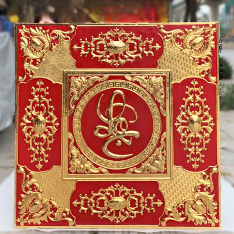 - Họa tiết tinh xảo: Tấm đồng được dát mỏng thúc chạm nổi chữ Lộc thư pháp mang tính nghệ thuật sống động.