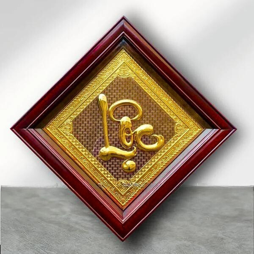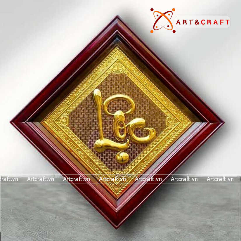 - Họa tiết tinh xảo: Tấm đồng được dát mỏng thúc chạm nổi chữ Lộc thư pháp mang tính nghệ thuật sống động.