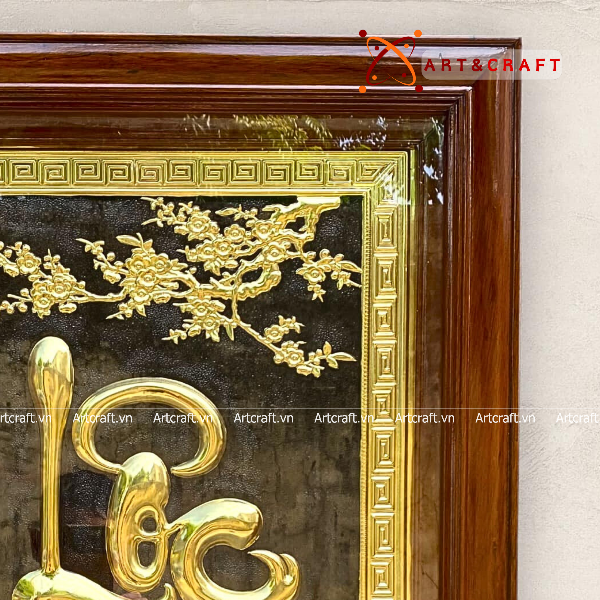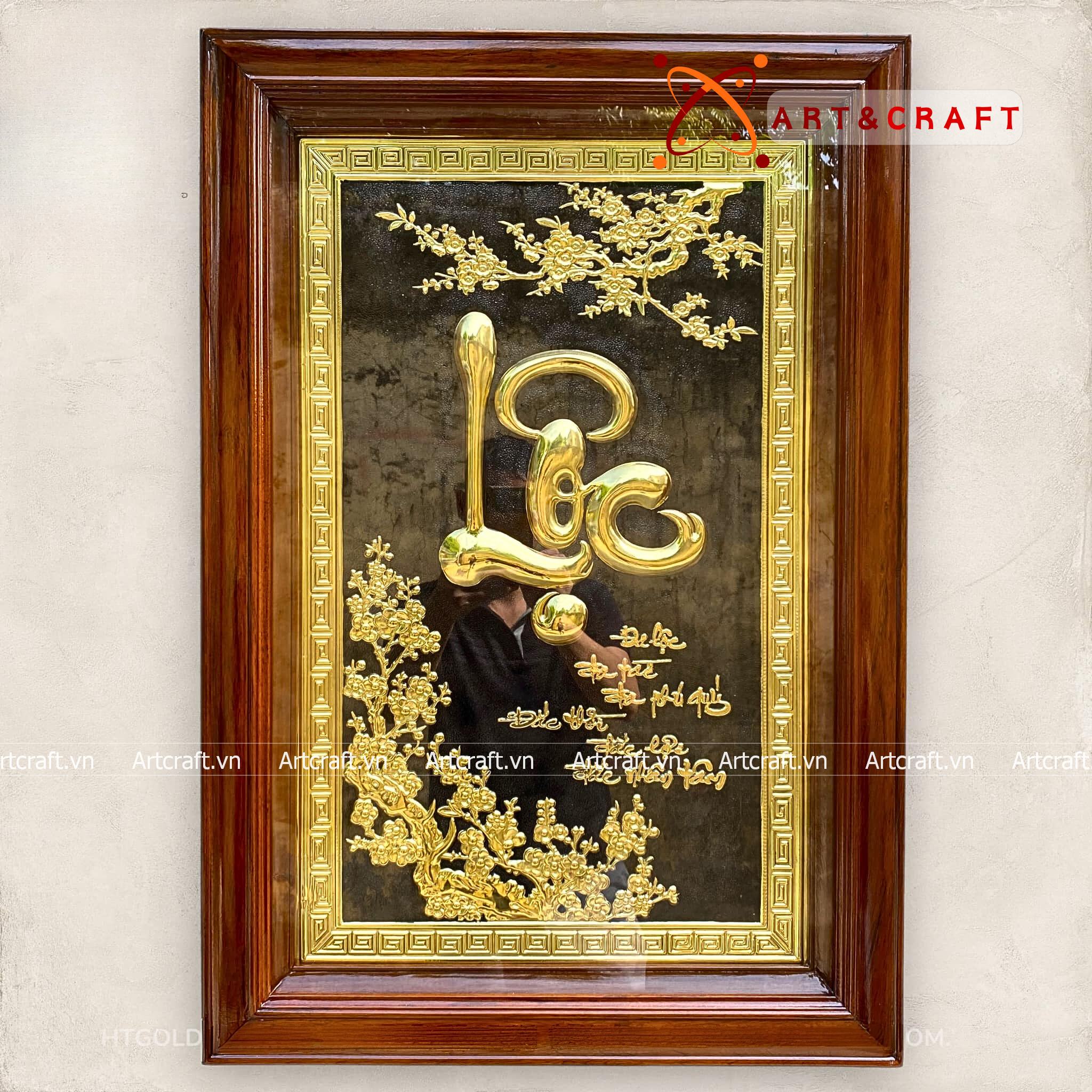 - Họa tiết tinh xảo: Tấm đồng được dát mỏng thúc chạm nổi chữ Lộc thư pháp mang tính nghệ thuật sống động.