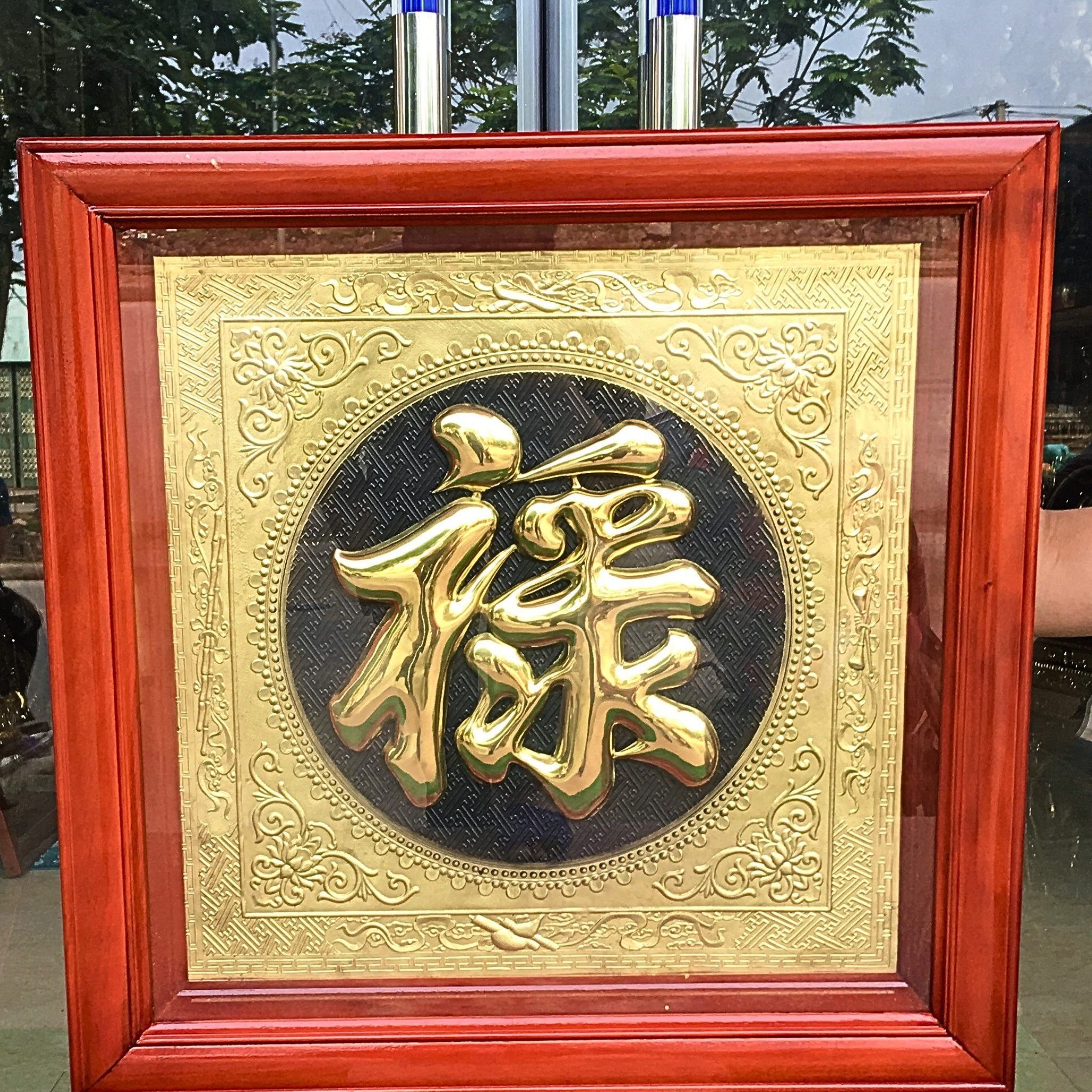 - Họa tiết tinh xảo: Tấm đồng được dát mỏng thúc chạm nổi chữ Lộc thư pháp mang tính nghệ thuật sống động.