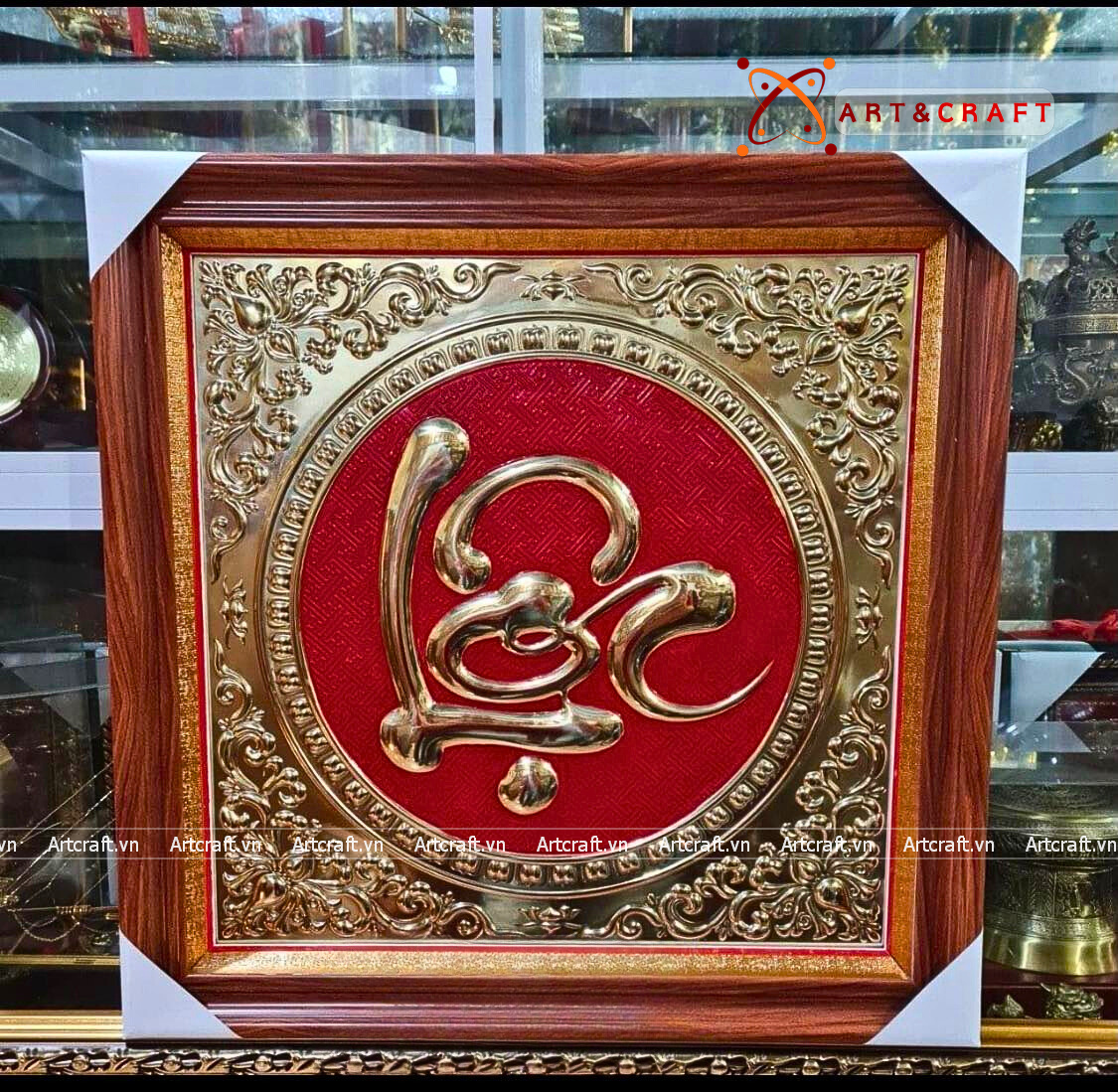 - Họa tiết tinh xảo: Tấm đồng được dát mỏng thúc chạm nổi chữ Lộc thư pháp mang tính nghệ thuật sống động.