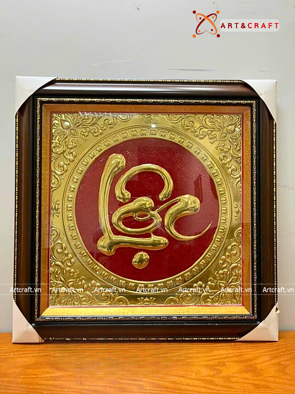 - Họa tiết tinh xảo: Tấm đồng được dát mỏng thúc chạm nổi chữ Lộc thư pháp mang tính nghệ thuật sống động.