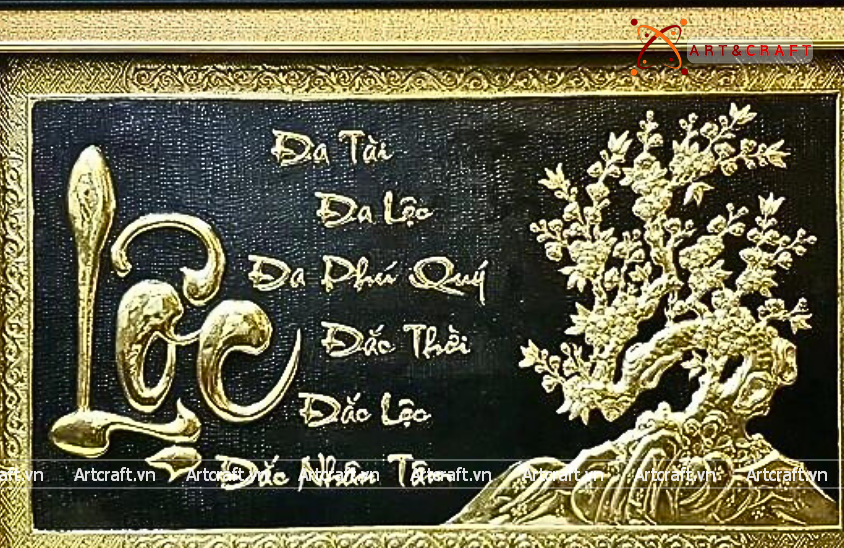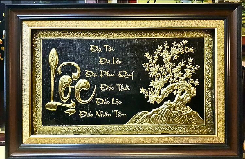 - Họa tiết tinh xảo: Tấm đồng được dát mỏng thúc chạm nổi chữ Lộc thư pháp mang tính nghệ thuật sống động.