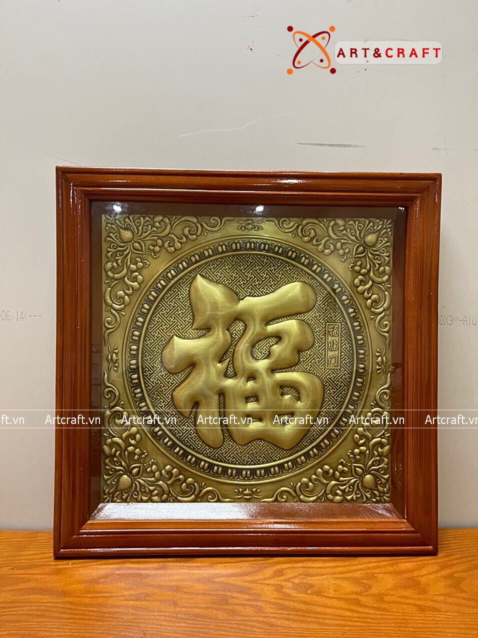 - Họa tiết tinh xảo: Tấm đồng được dát mỏng thúc chạm nổi chữ Phúc thư pháp mang tính nghệ thuật sống động.