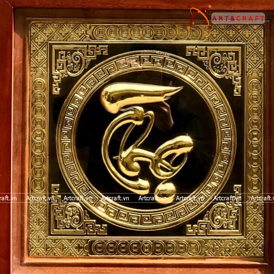 - Họa tiết tinh xảo: Tấm đồng được dát mỏng thúc chạm nổi chữ Thọ thư pháp mang tính nghệ thuật sống động.