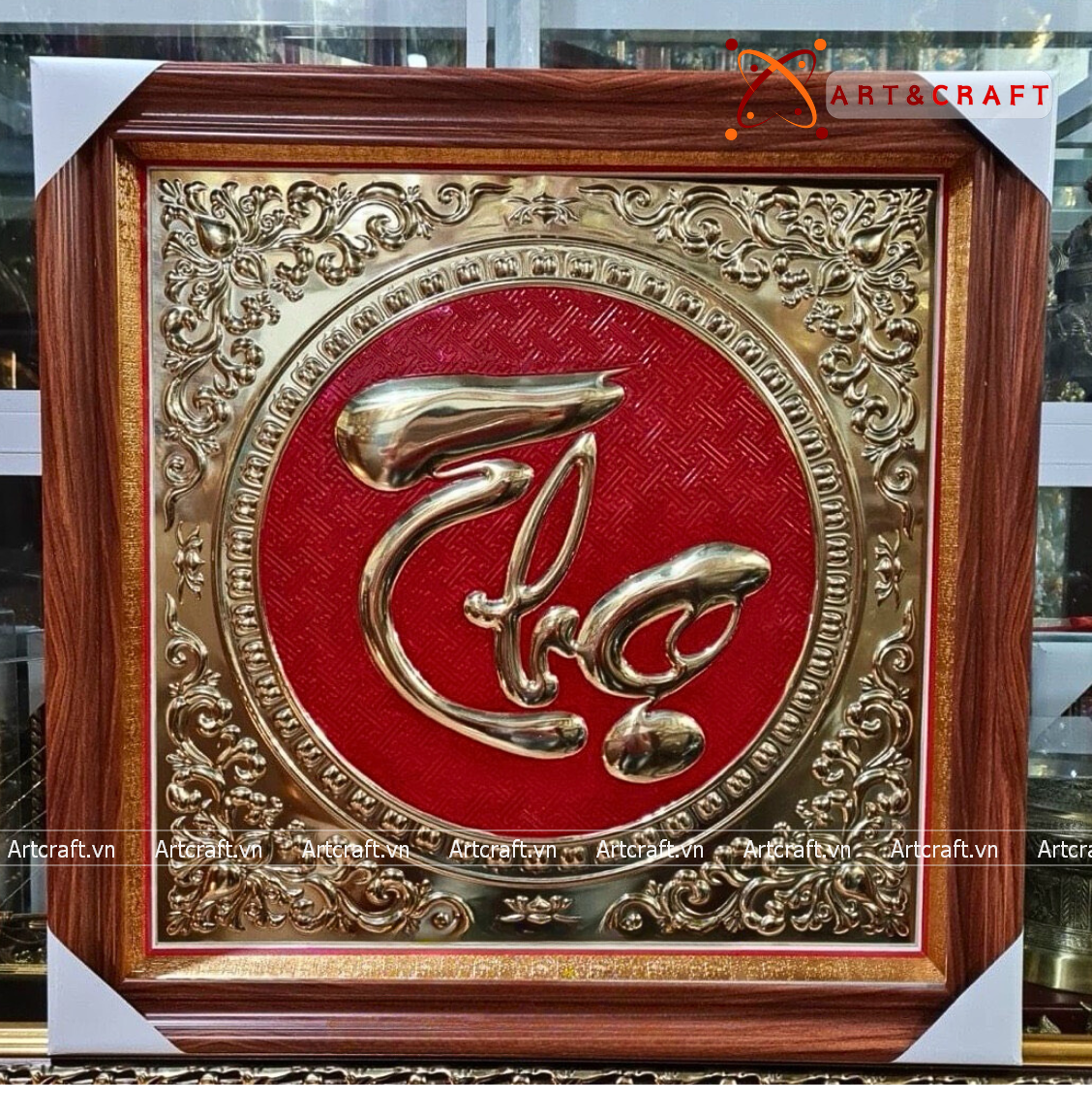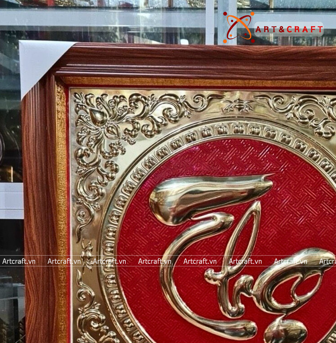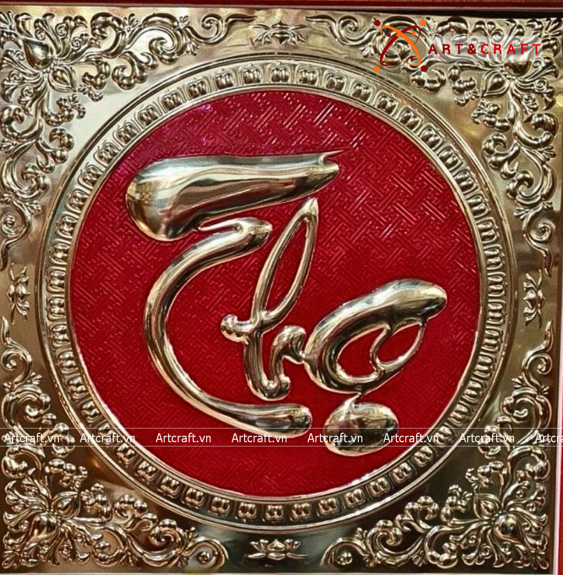 - Họa tiết tinh xảo: Tấm đồng được dát mỏng thúc chạm nổi chữ Thọ thư pháp mang tính nghệ thuật sống động.