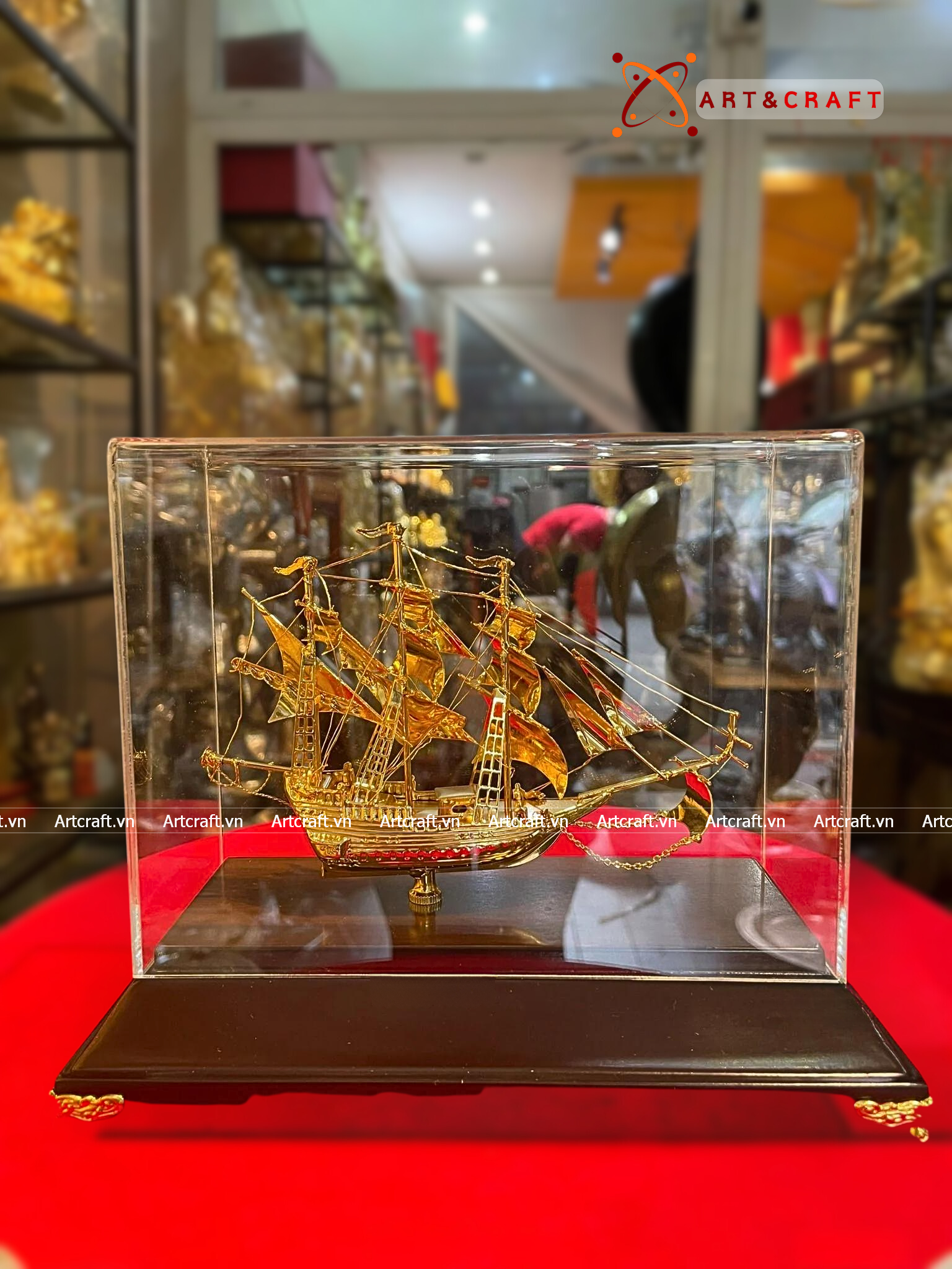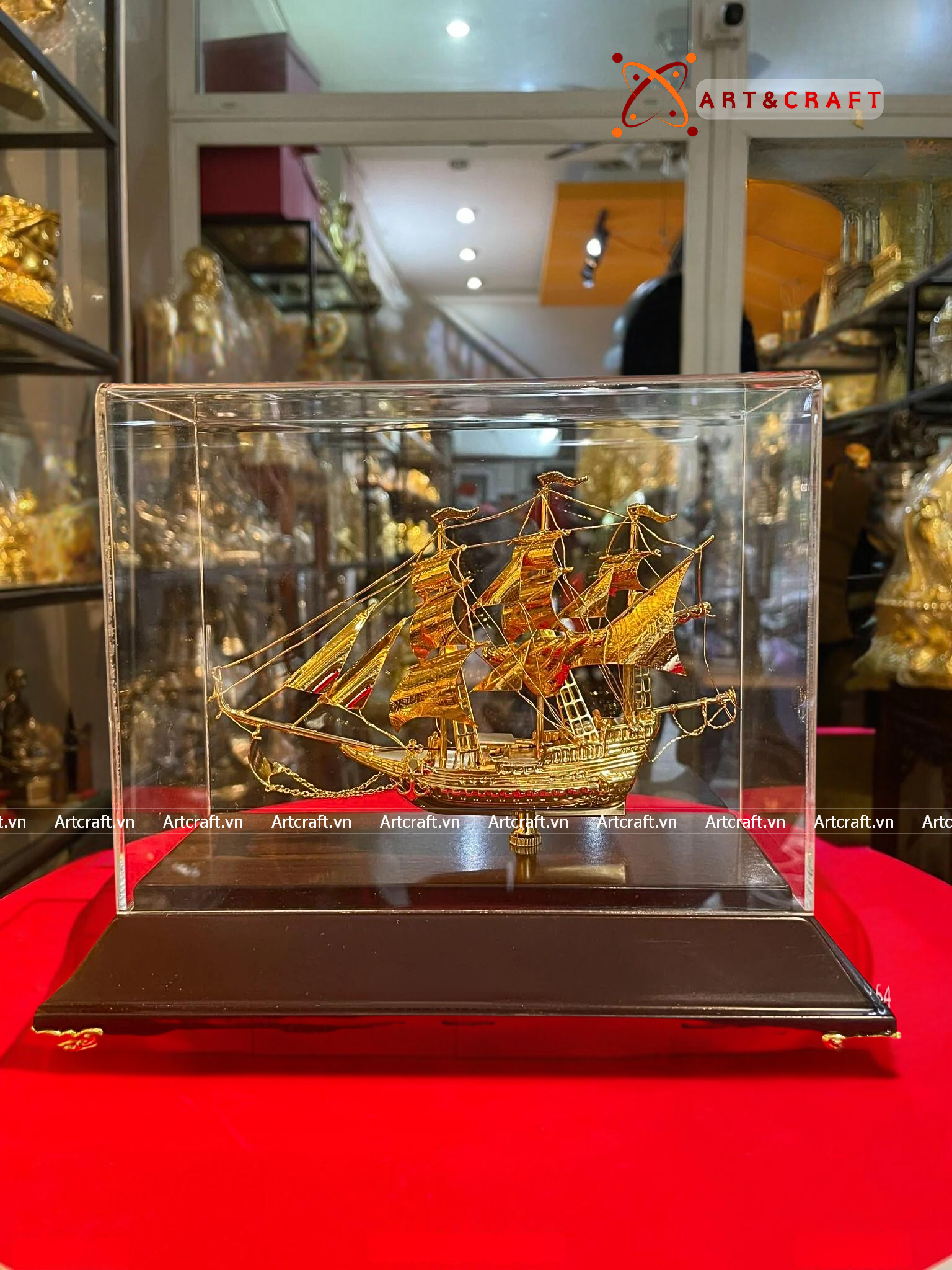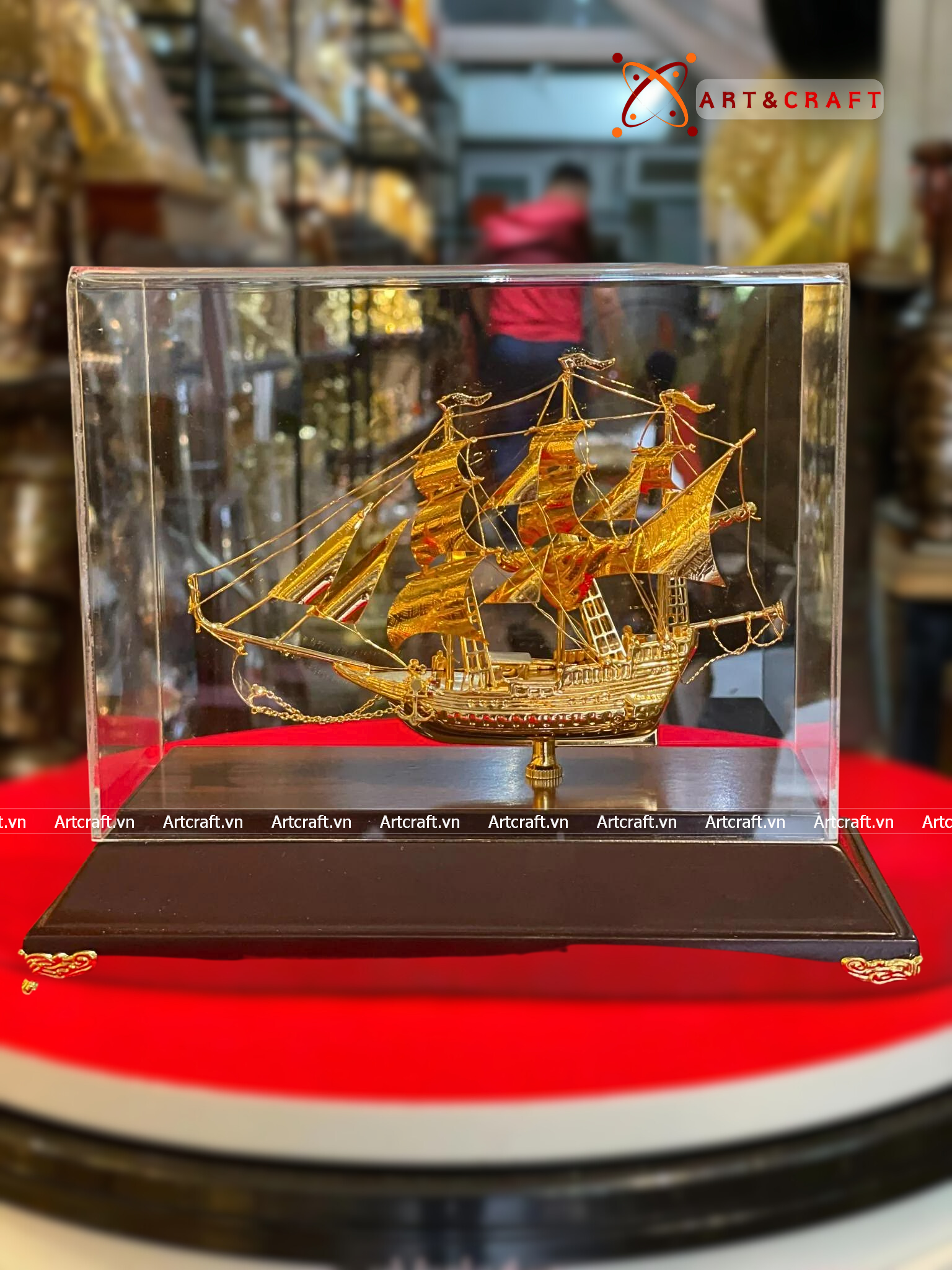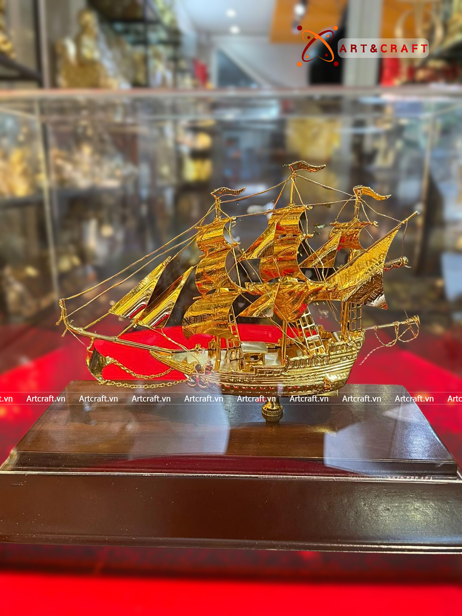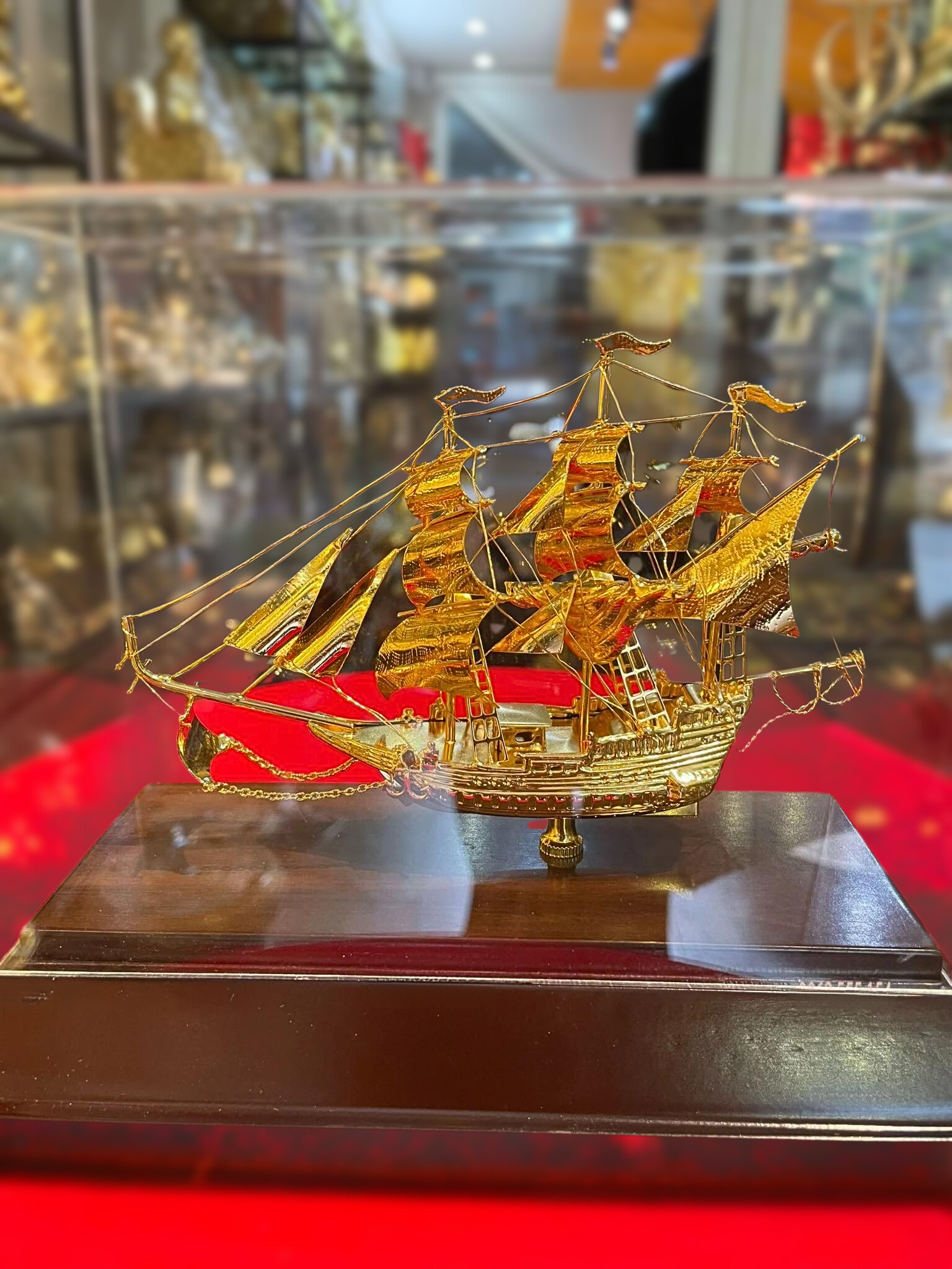 - Họa tiết tinh xảo: Quà Tặng Mô Hình Thuyền Buồm được thúc chạm tinh xảo với hình tượng thuyền buồm căng gió vượt sóng được dát vàng vô cùng sang trọng và giá trị.