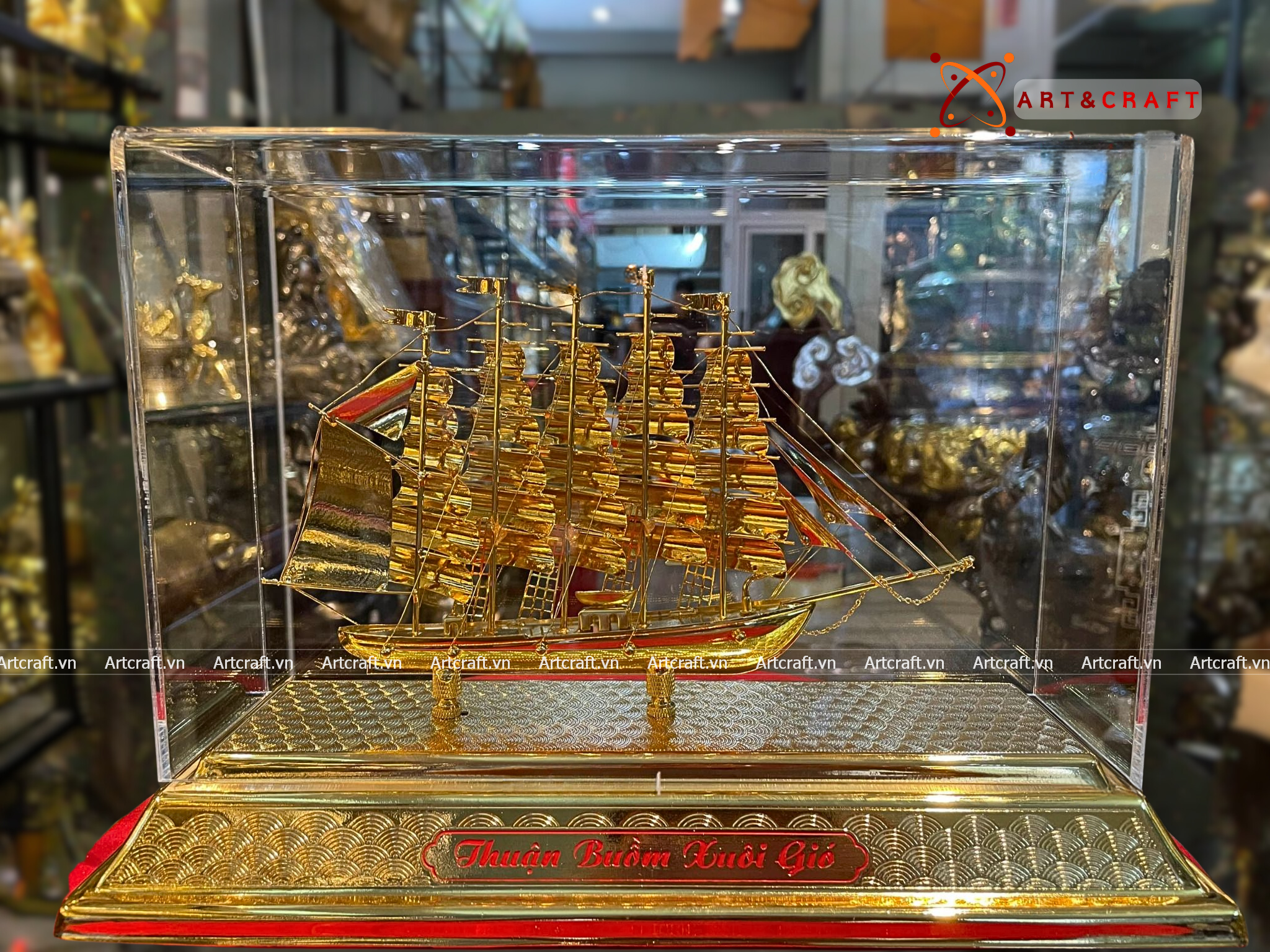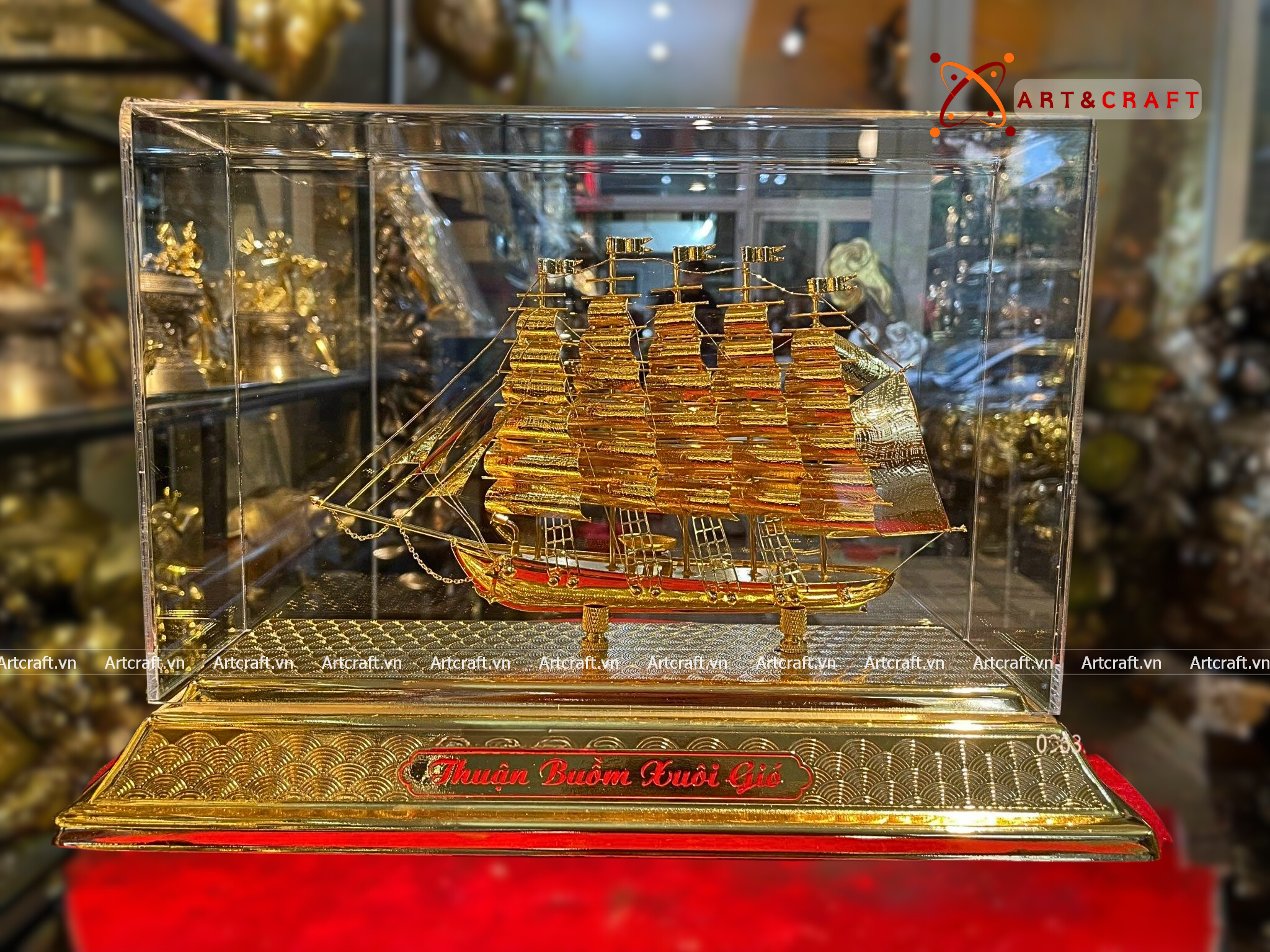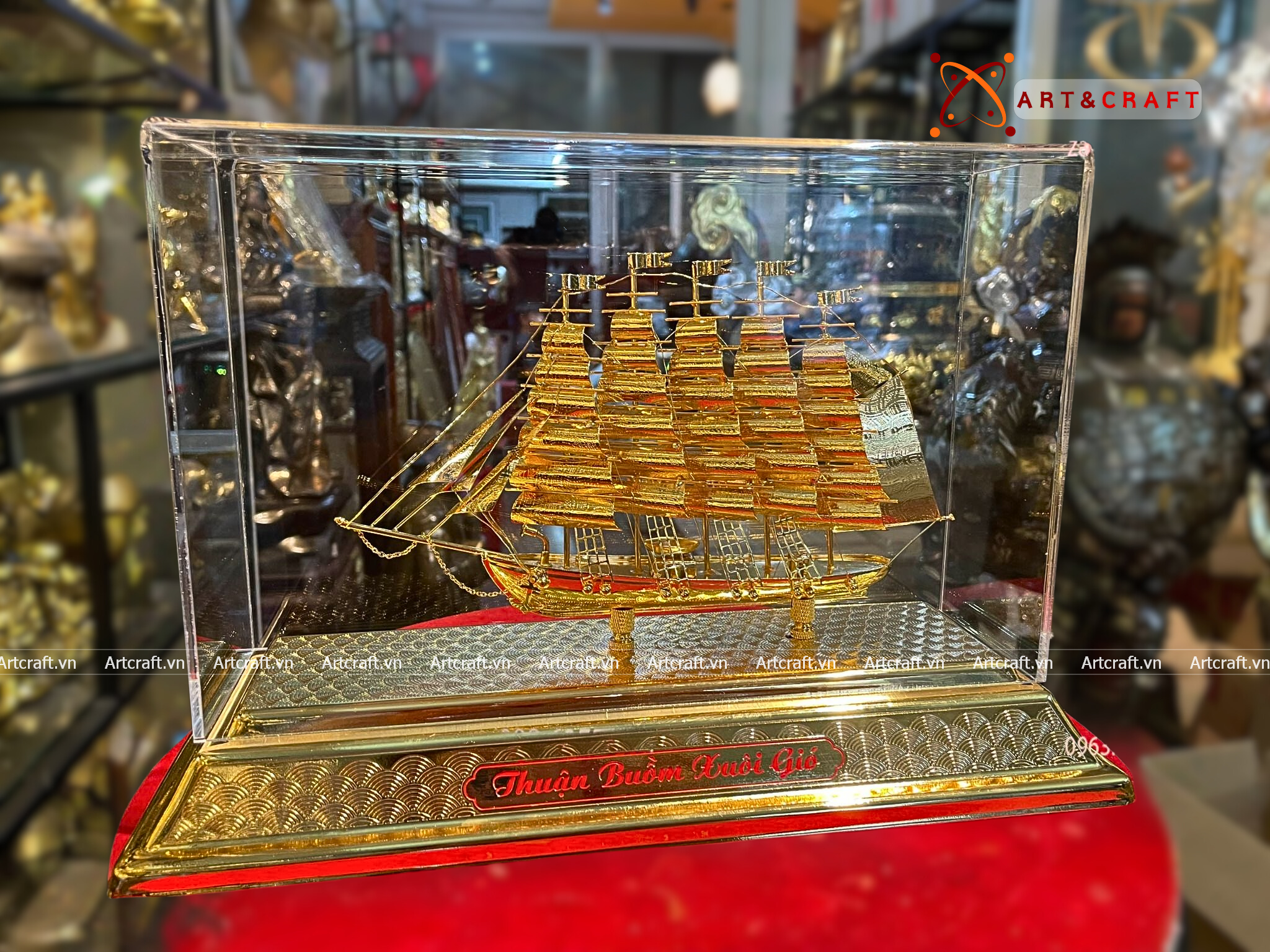 - Họa tiết tinh xảo: Quà Tặng Mô Hình Thuyền Buồm được thúc chạm tinh xảo với hình tượng thuyền buồm căng gió vượt sóng được dát vàng vô cùng sang trọng và giá trị.