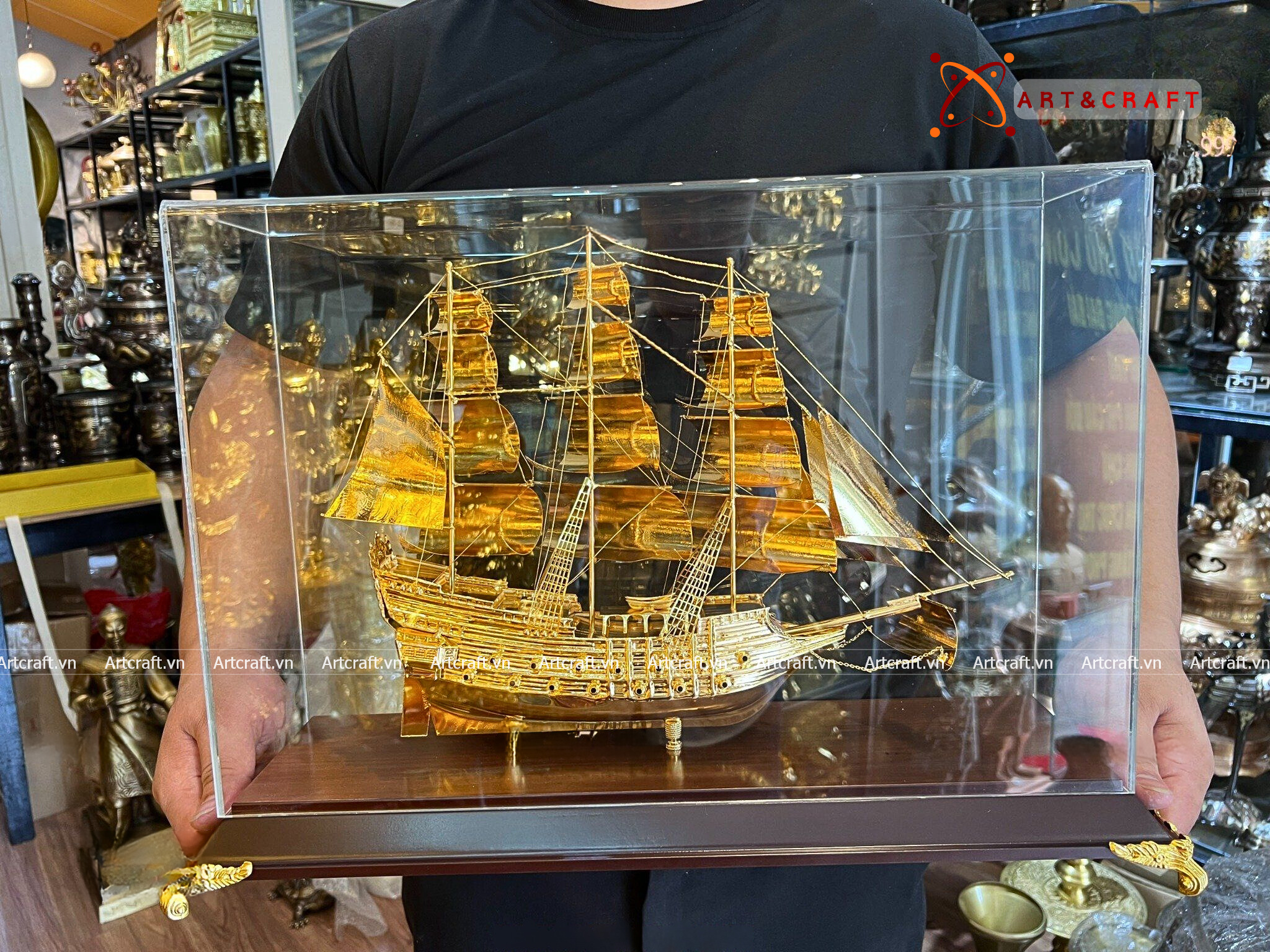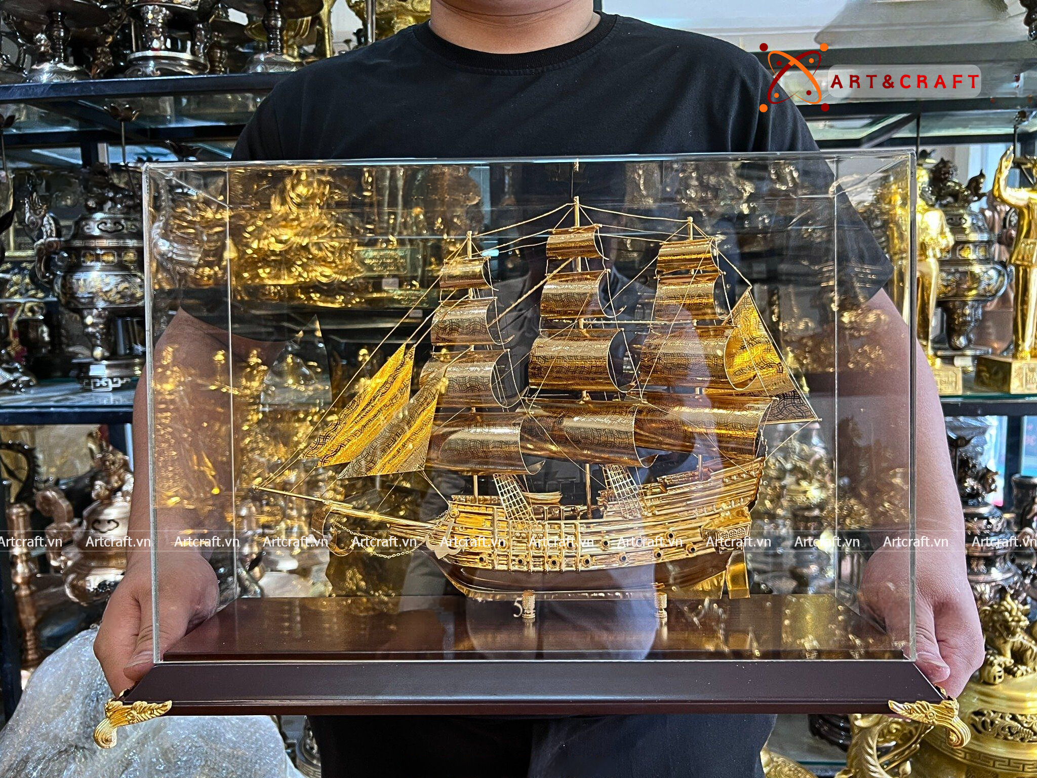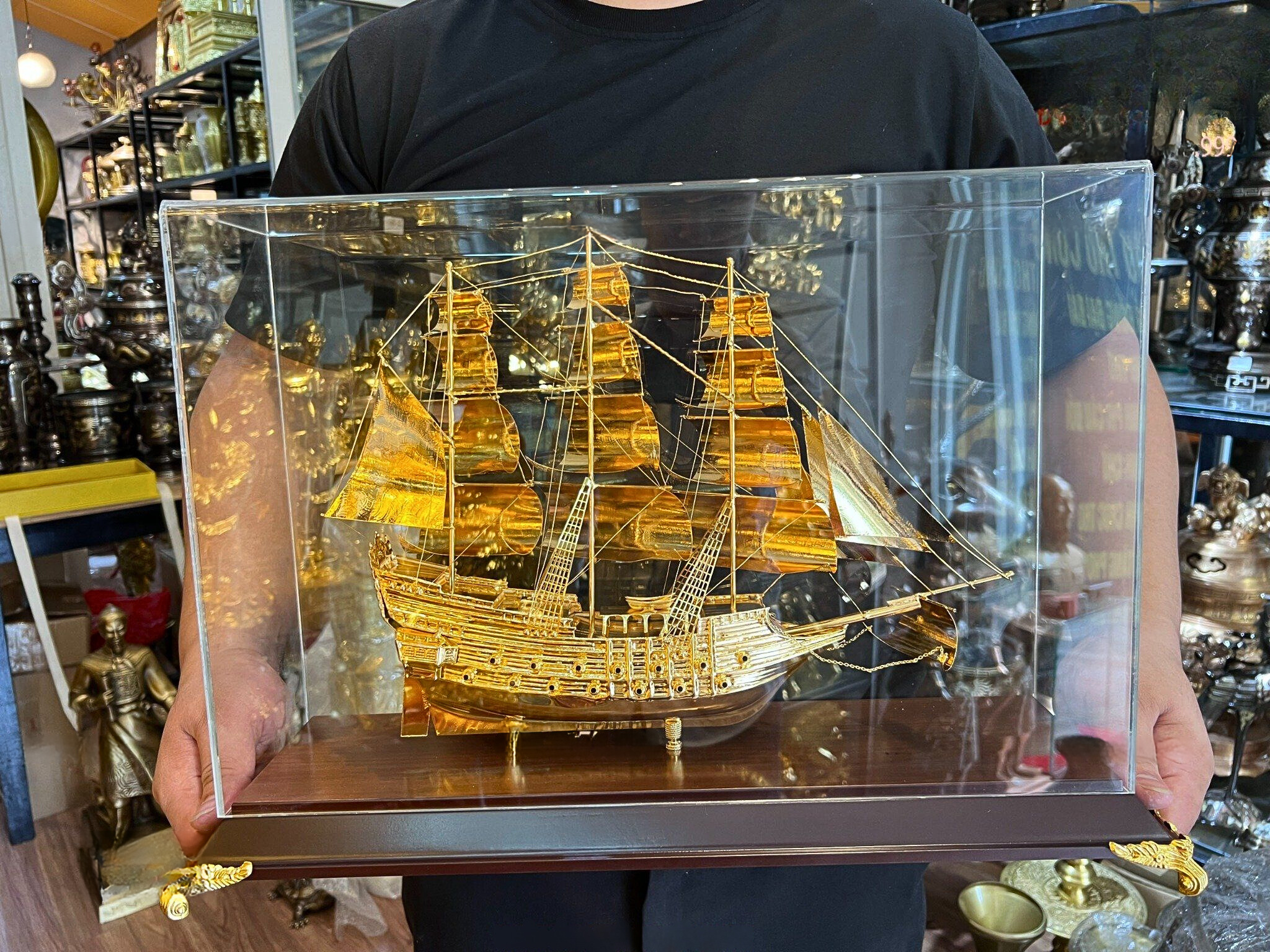 - Họa tiết tinh xảo: Quà Tặng Mô Hình Thuyền Buồm được thúc chạm tinh xảo với hình tượng thuyền buồm căng gió vượt sóng được dát vàng vô cùng sang trọng và giá trị.