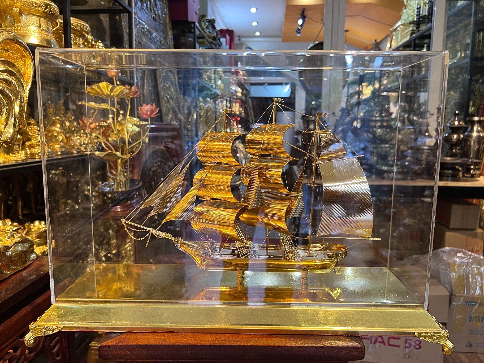 - Họa tiết tinh xảo: Quà Tặng Mô Hình Thuyền Buồm được thúc chạm tinh xảo với hình tượng thuyền buồm căng gió vượt sóng được dát vàng vô cùng sang trọng và giá trị.