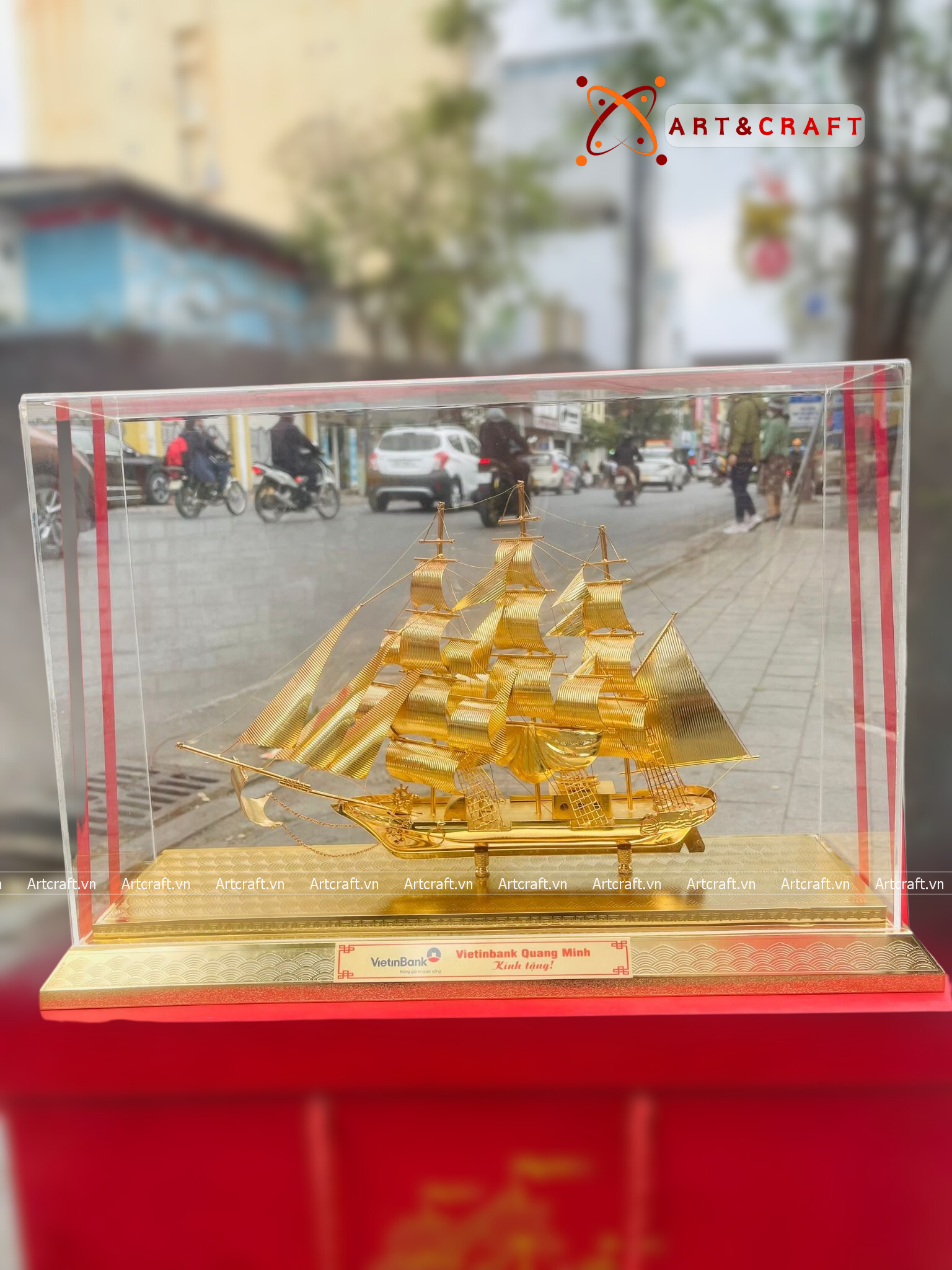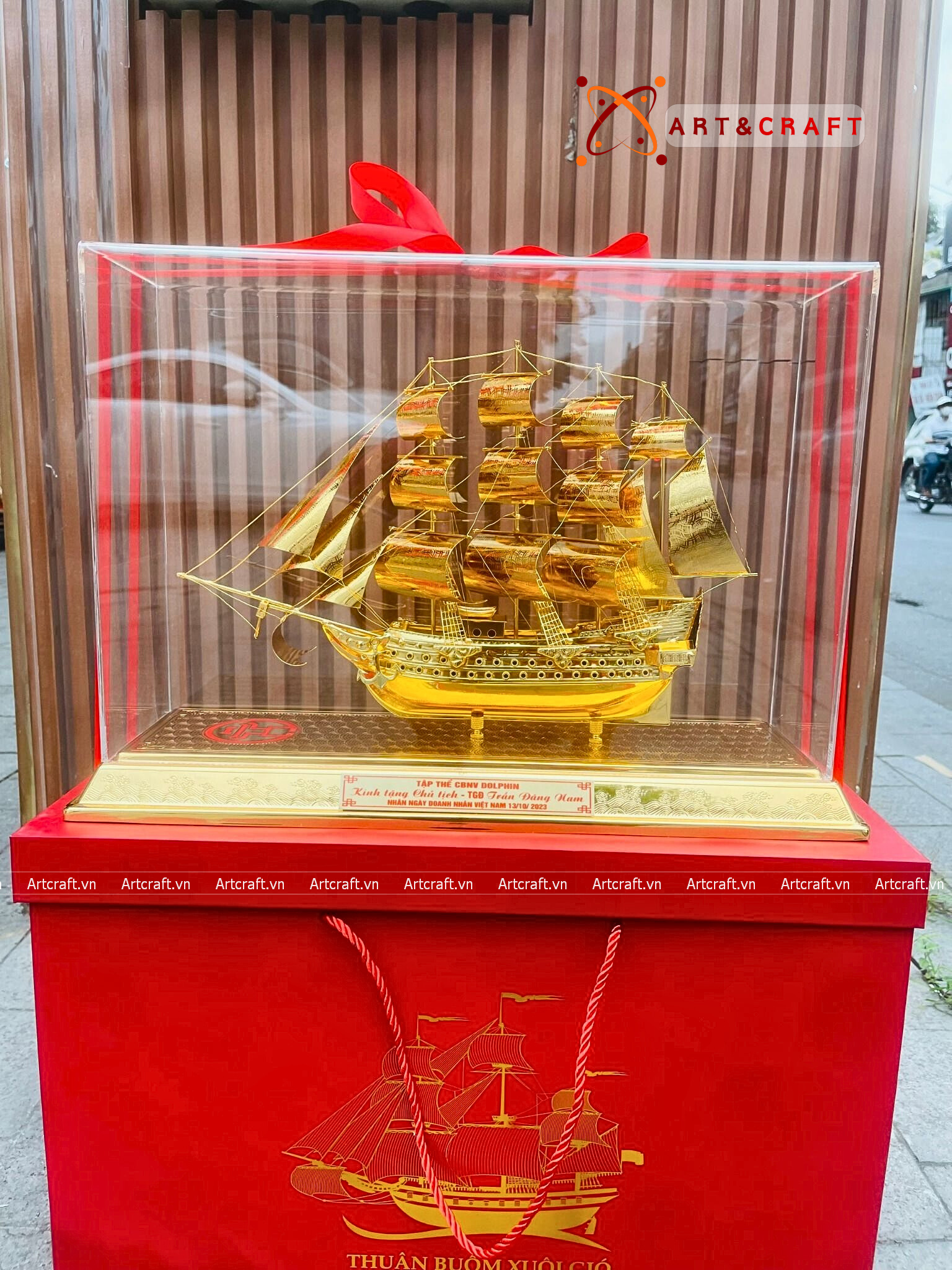 - Họa tiết tinh xảo: Quà Tặng Mô Hình Thuyền Buồm được thúc chạm tinh xảo với hình tượng thuyền buồm căng gió vượt sóng được dát vàng vô cùng sang trọng và giá trị.