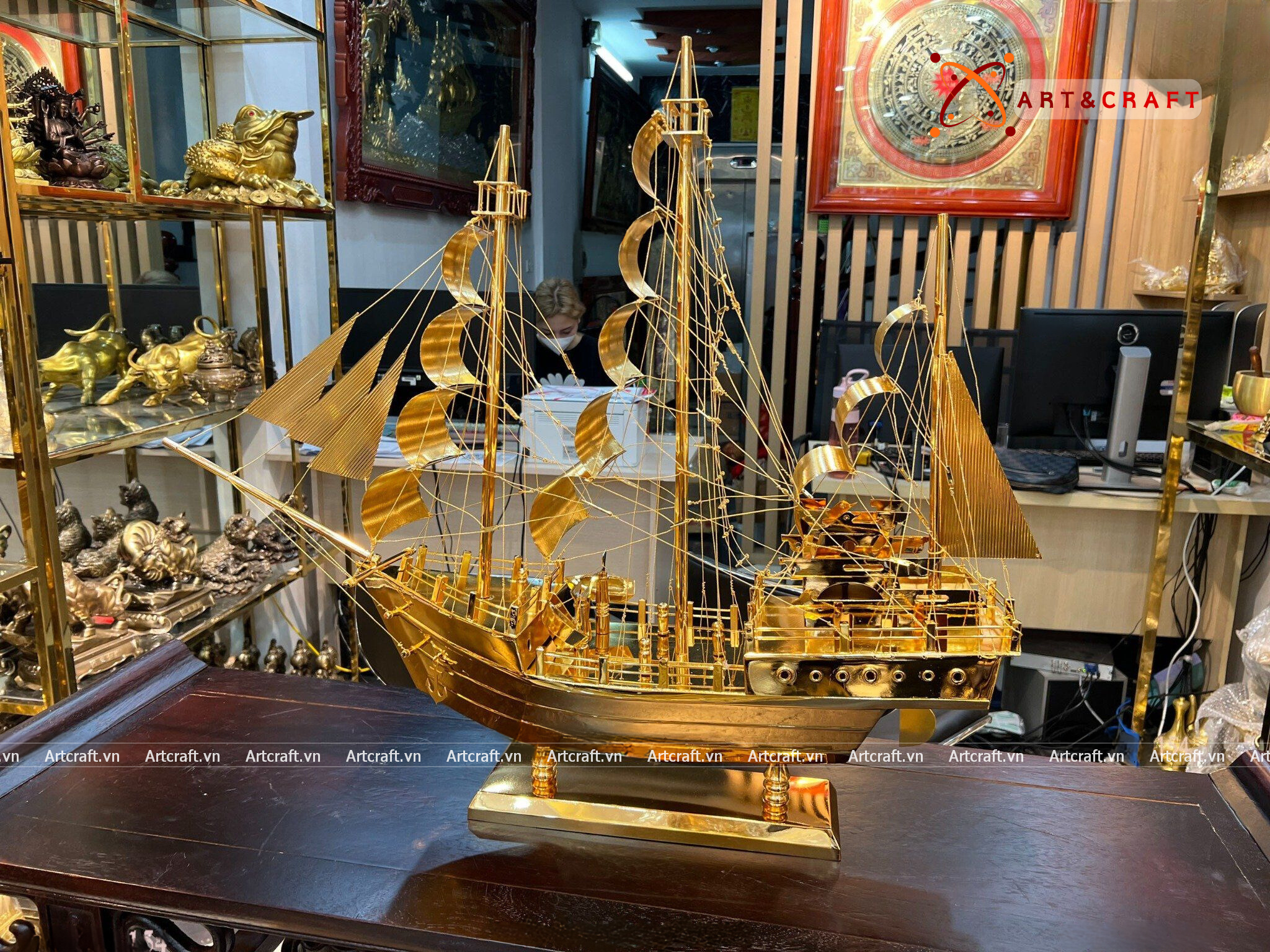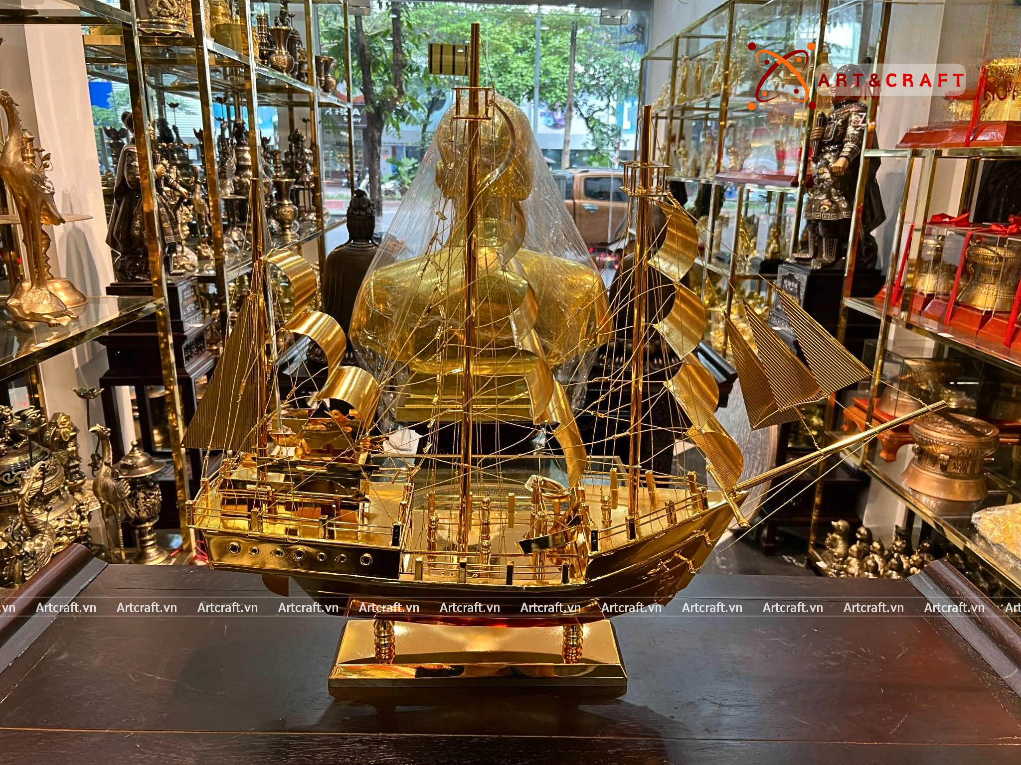 - Họa tiết tinh xảo: Quà Tặng Mô Hình Thuyền Buồm được thúc chạm tinh xảo với hình tượng thuyền buồm căng gió vượt sóng được dát vàng vô cùng sang trọng và giá trị.