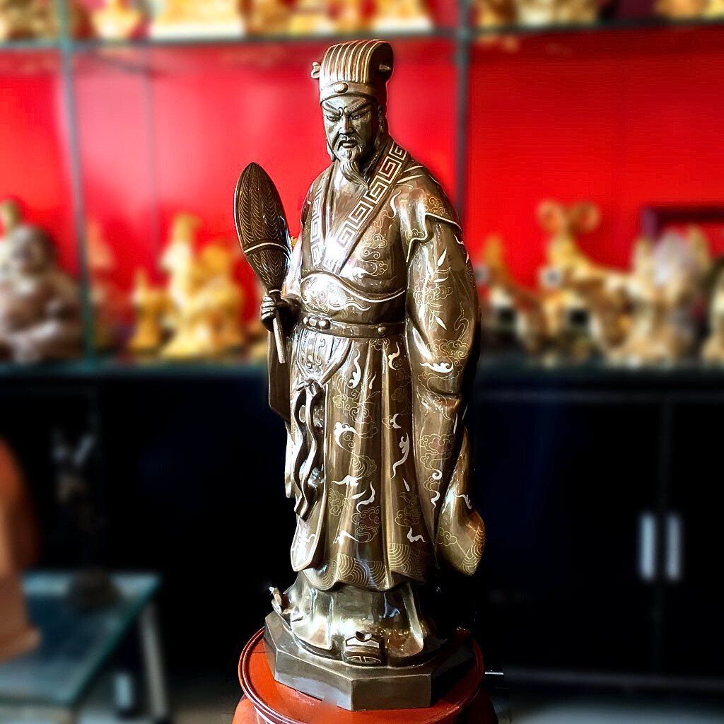 - Chất liệu cao cấp: Nguyên liệu chính tạo nên Quà Tặng Phong Thủy Tượng Khổng Minh chính là đồng, là kim loại quý thứ 3 trong tự nhiên. Đây là kim loại mềm, uốn dẻo tốt và được tinh luyện ở khoảng 1000°C có tính chịu nhiệt tốt, bền đẹp khi để ngoài môi trường.