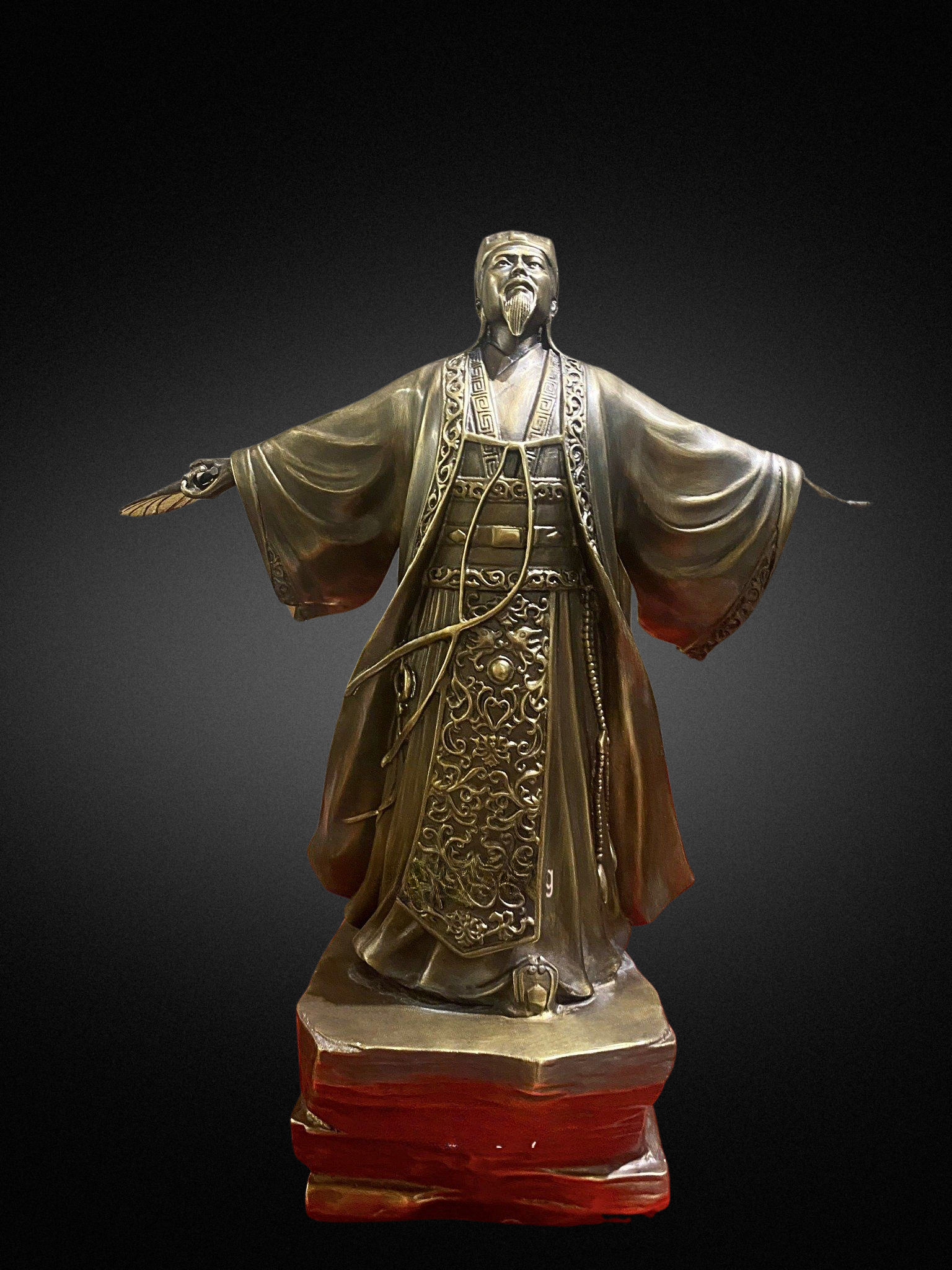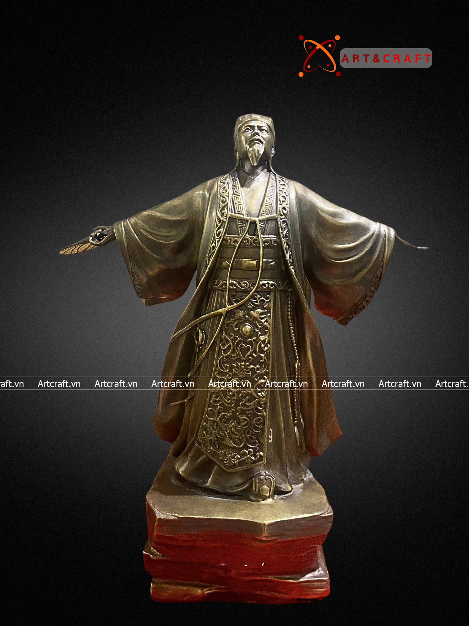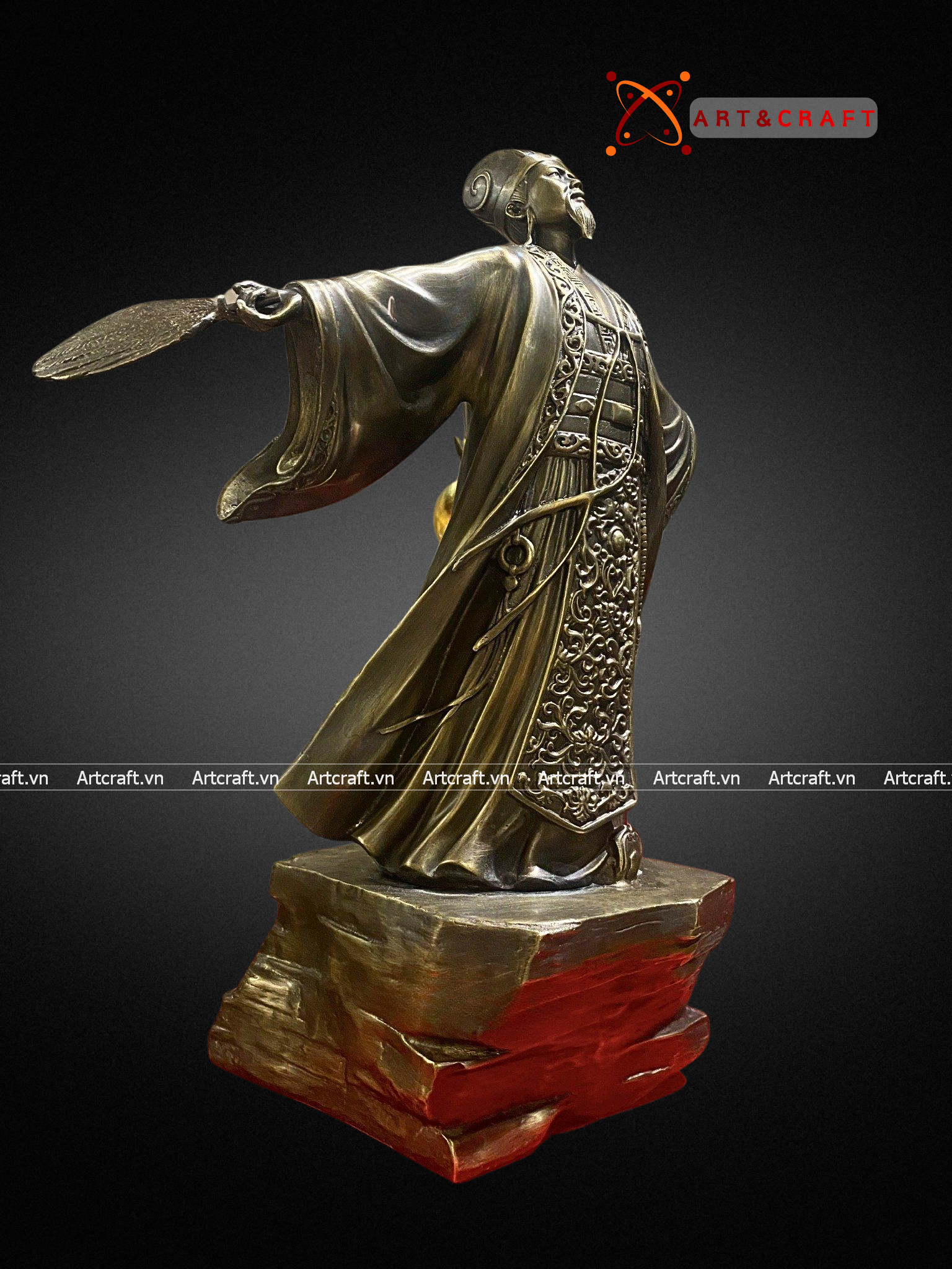 - Chất liệu cao cấp: Nguyên liệu chính tạo nên Quà Tặng Phong Thủy Tượng Khổng Minh chính là đồng, là kim loại quý thứ 3 trong tự nhiên. Đây là kim loại mềm, uốn dẻo tốt và được tinh luyện ở khoảng 1000°C có tính chịu nhiệt tốt, bền đẹp khi để ngoài môi trường.