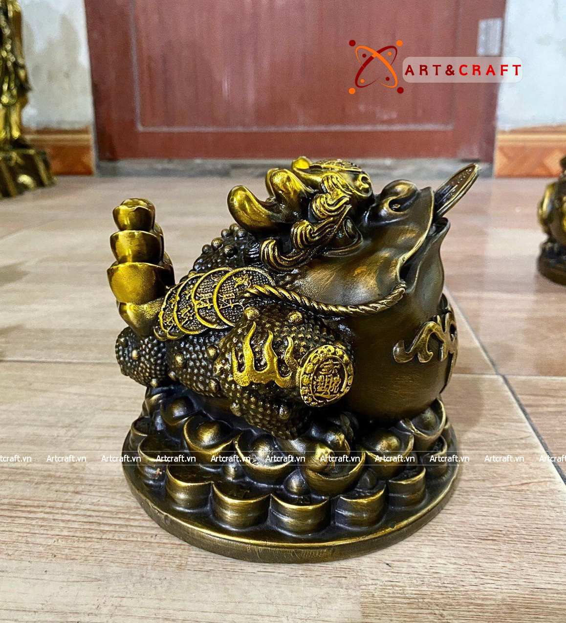 + Đặt tại ban thờ thần tài hoặc phòng khách: Tượng Thiềm Thừ đặt gần ban thờ thần tài hoặc trên bàn phòng khách vừa là tượng trang trí đẹp vừa là vật phẩm phong thủy thu hút tài lộc, công danh, may mắn.