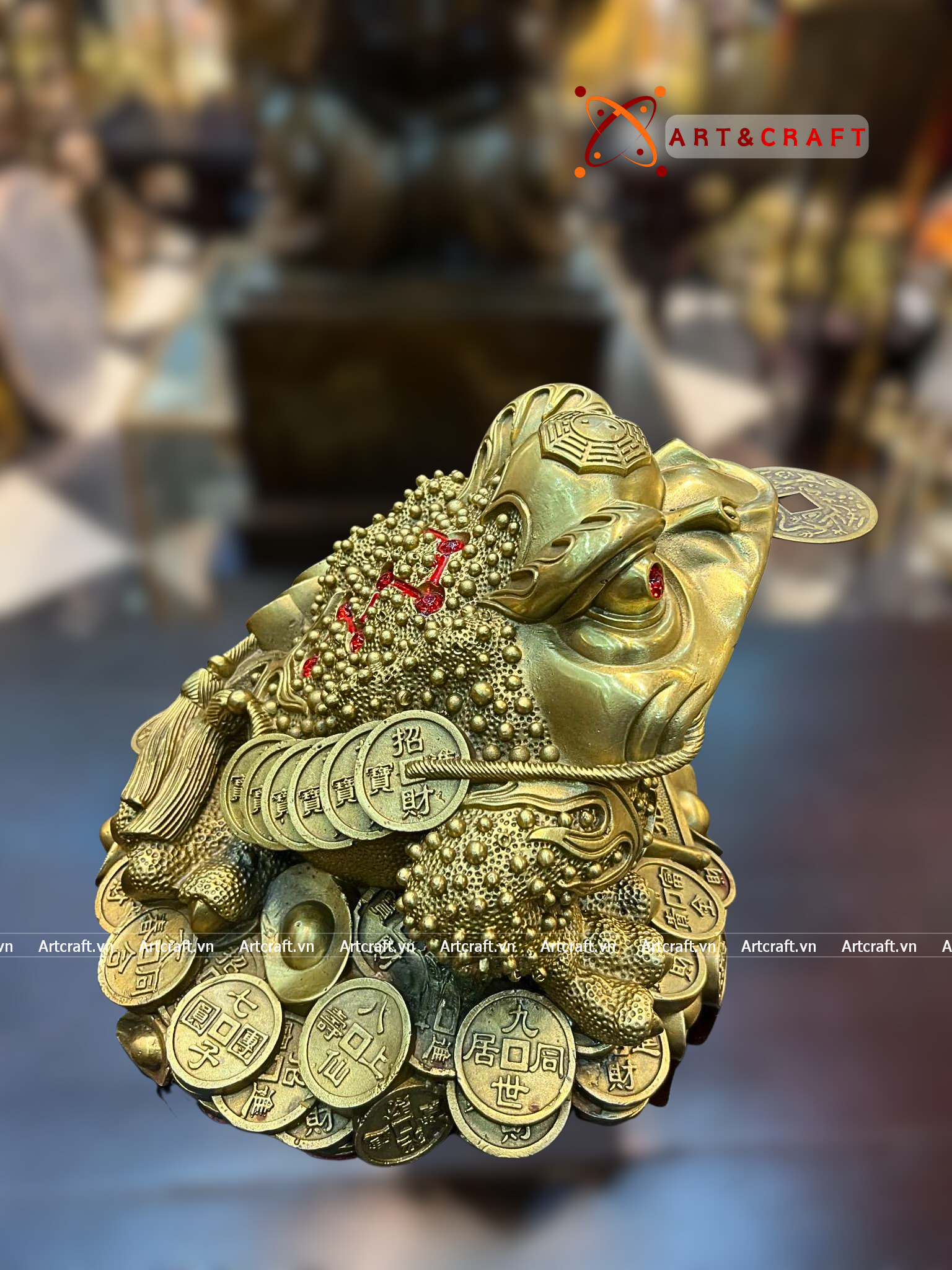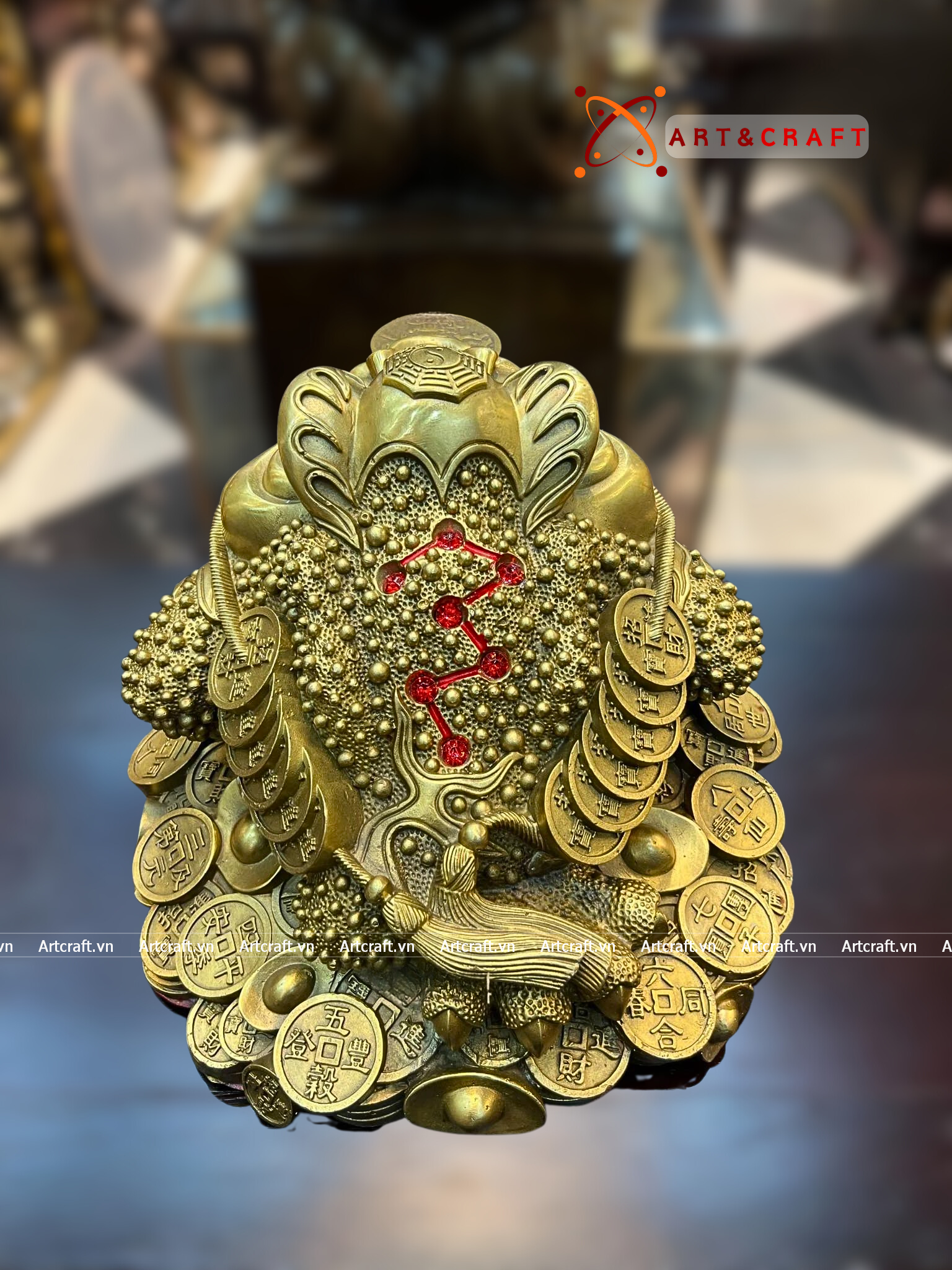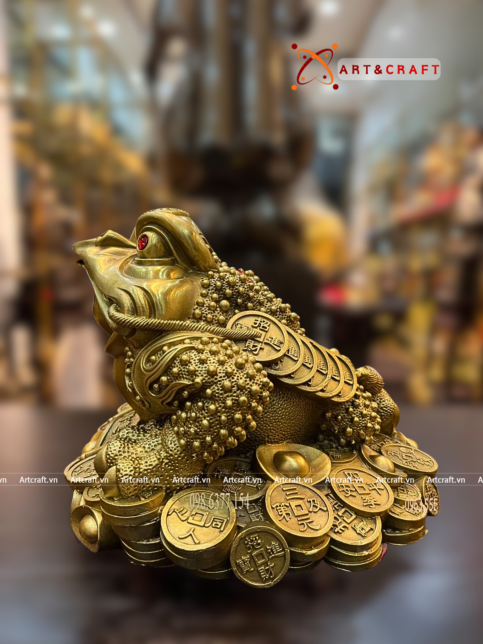 + Đặt tại ban thờ thần tài hoặc phòng khách: Tượng Thiềm Thừ đặt gần ban thờ thần tài hoặc trên bàn phòng khách vừa là tượng trang trí đẹp vừa là vật phẩm phong thủy thu hút tài lộc, công danh, may mắn.