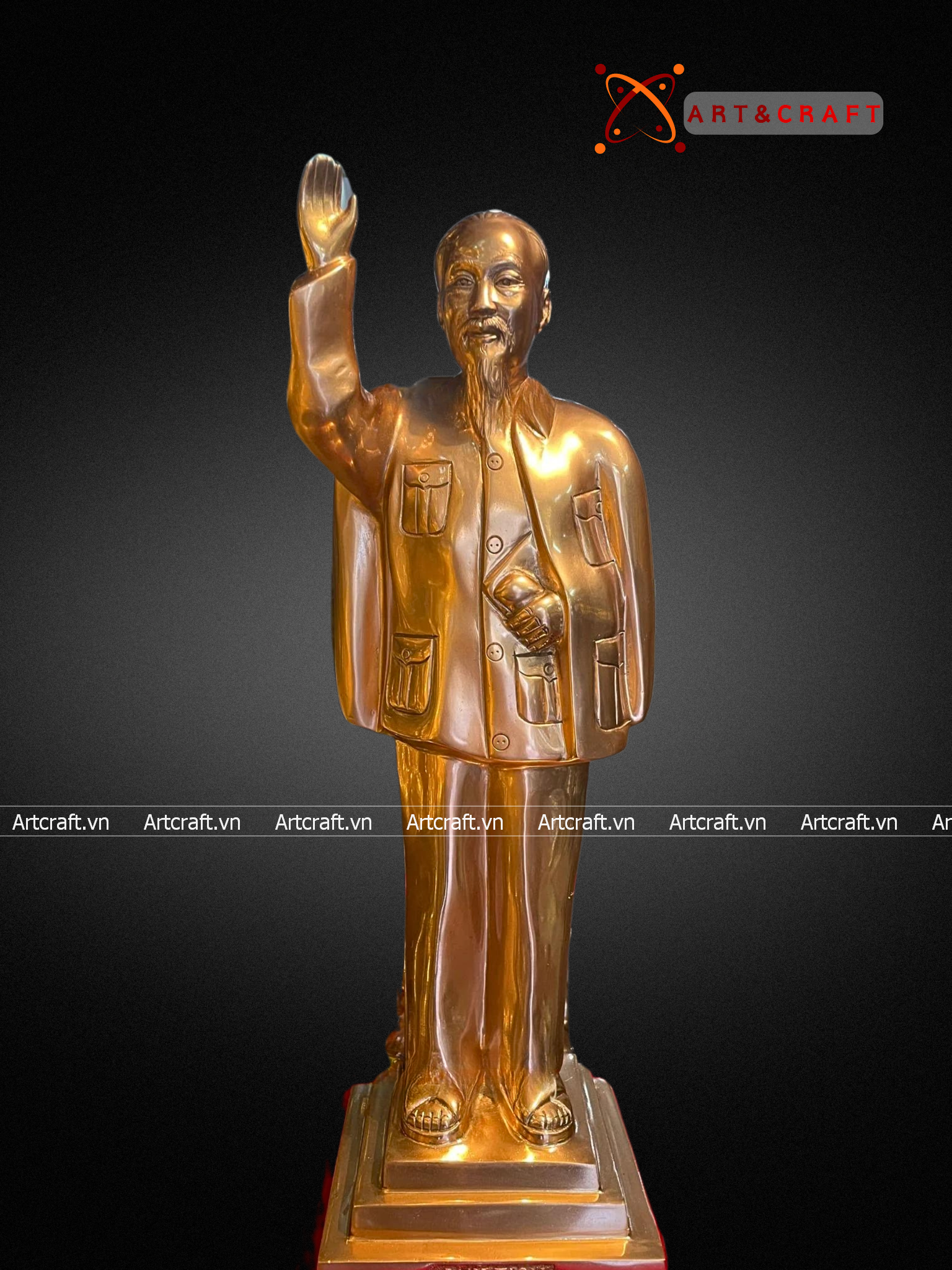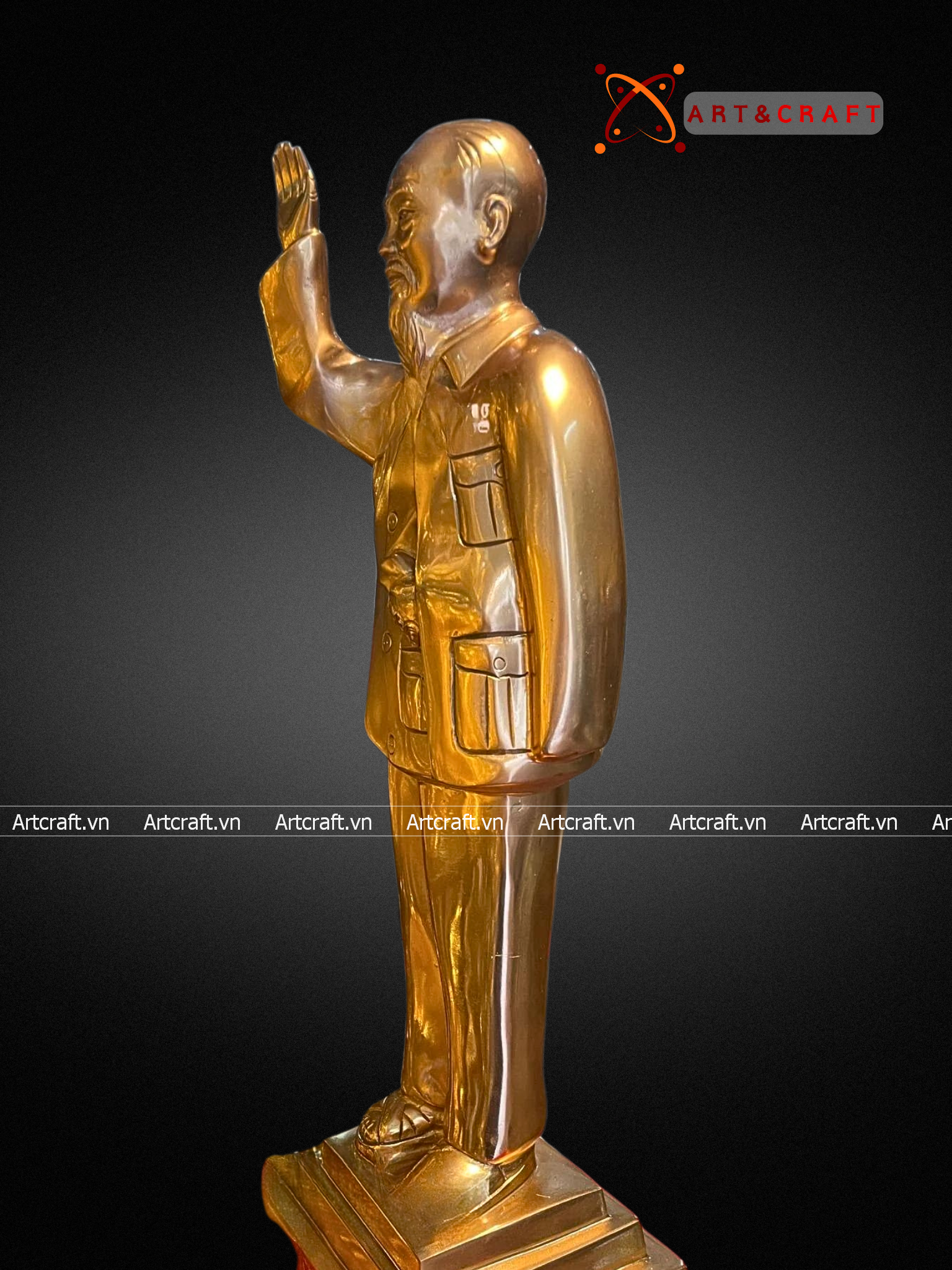 - Họa tiết tinh xảo: Tượng Bác Hồ được đúc chạm tinh xảo, tạo nên hình tượng một lãnh tụ gần gũi, thông thái. Một số tượng còn được mạ vàng, chạm khảm rất tinh xảo và giá trị làm tăng thêm vẻ đẹp của sản phẩm.