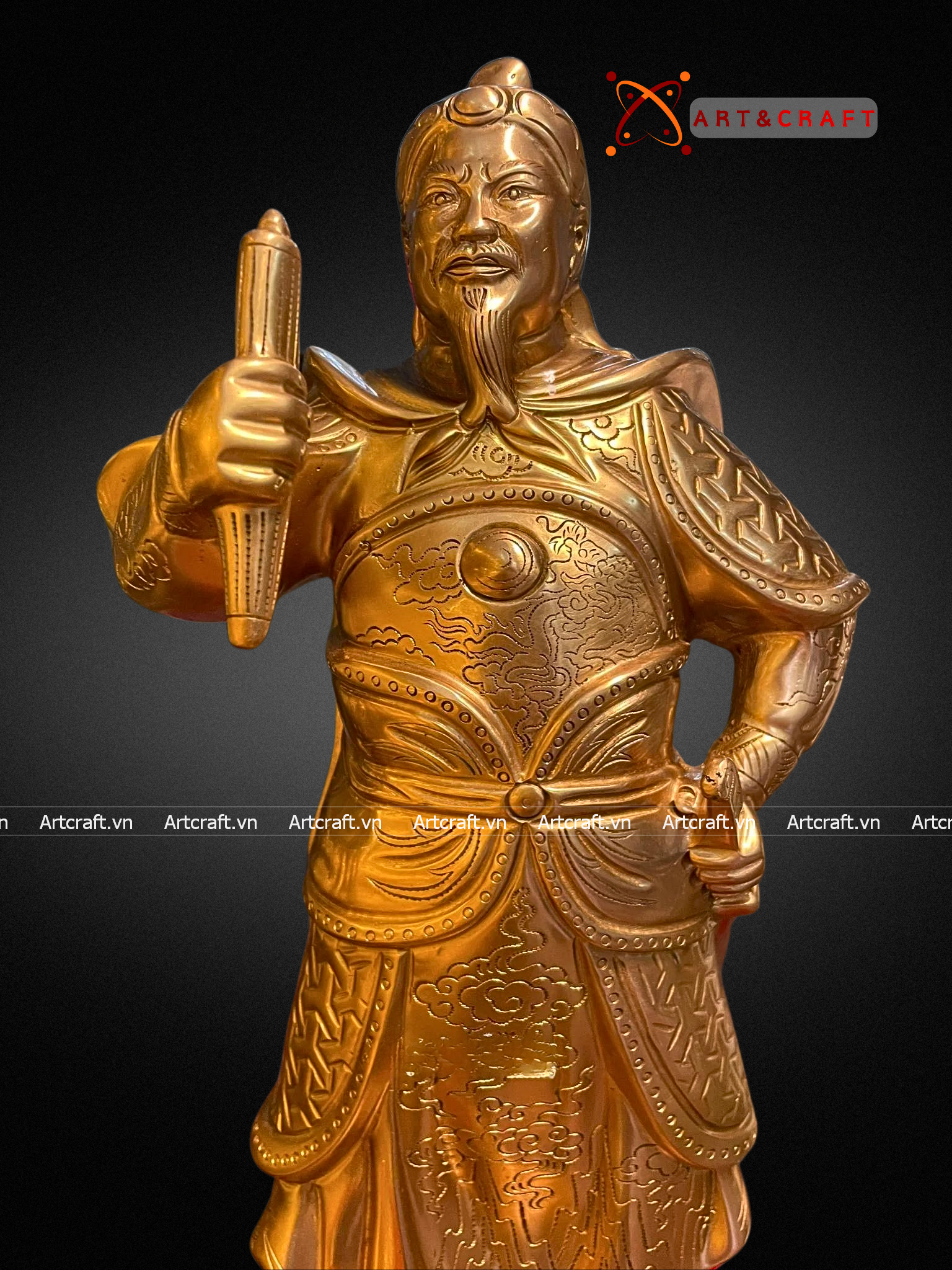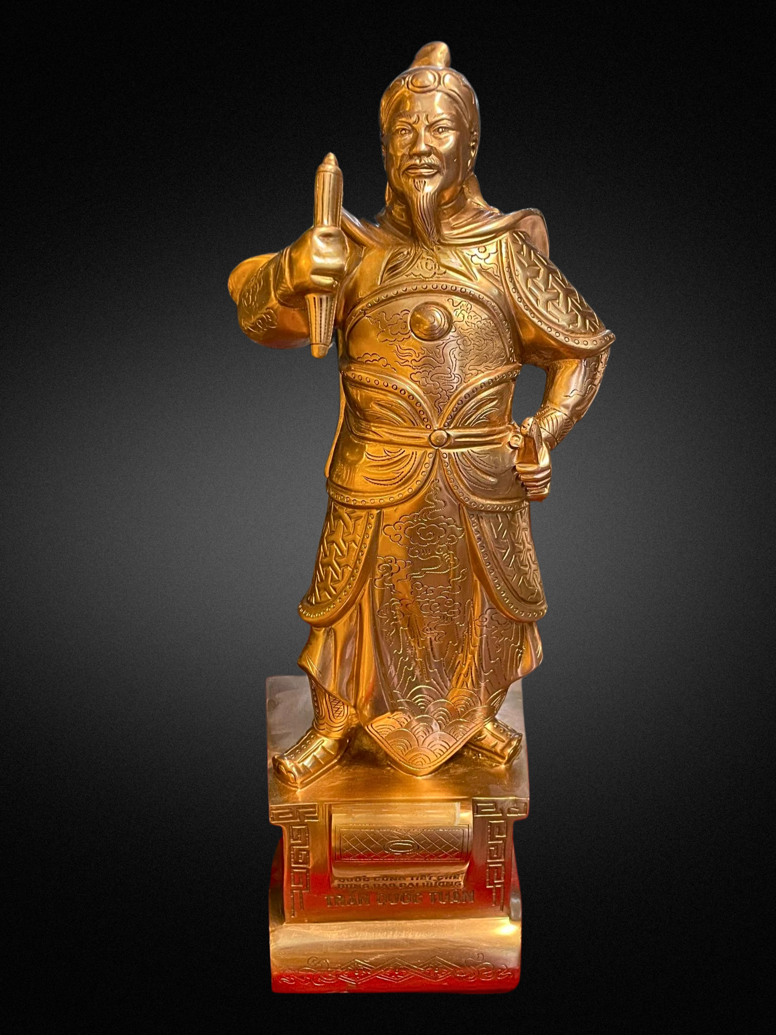 - Họa tiết tinh xảo: Quà Tặng Sếp Tượng Trần Hưng Đạo được đúc chạm tinh xảo, tạo nên hình tượng một nhà quân sự, nhà chính trị vĩ đại của dân tộc ta. Một số tượng còn được mạ vàng, chạm khảm rất tinh xảo và giá trị làm tăng thêm vẻ đẹp của sản phẩm.