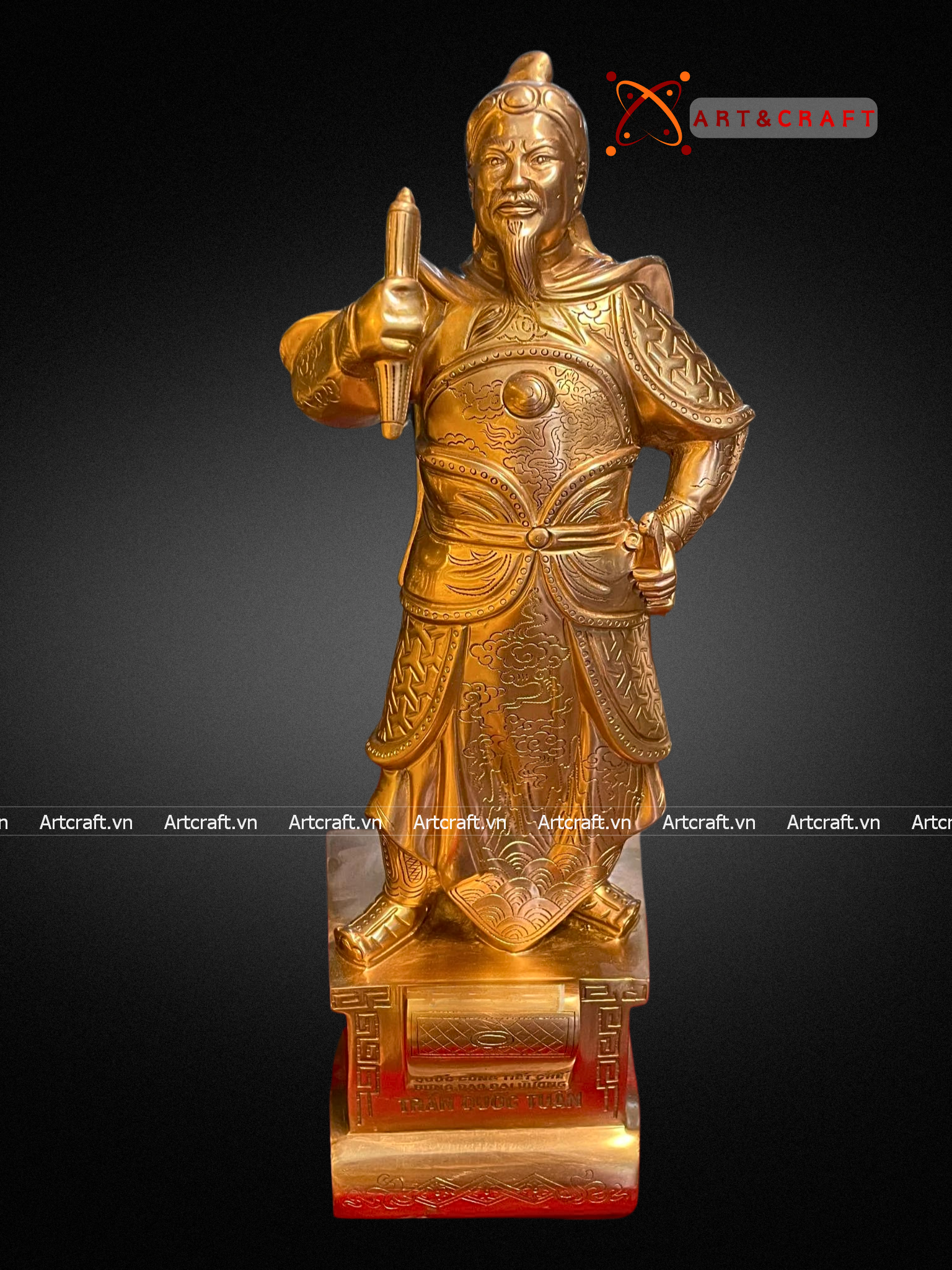 + Quà Tặng Sếp Tượng Trần Hưng Đạo được chế tác từ đồng cao cấp có giá trị cao và được xử lý bề mặt bằng lớp phủ bảo vệ tránh oxi hóa nhưng theo thời gian nhiều năm có thể bị tác động bởi các yếu tố bên ngoài nên cần lưu ý tránh đặt tượng nơi ánh sáng mặt trời chiếu vào trực tiếp, nơi bụi bẩn, ẩm ướt.
