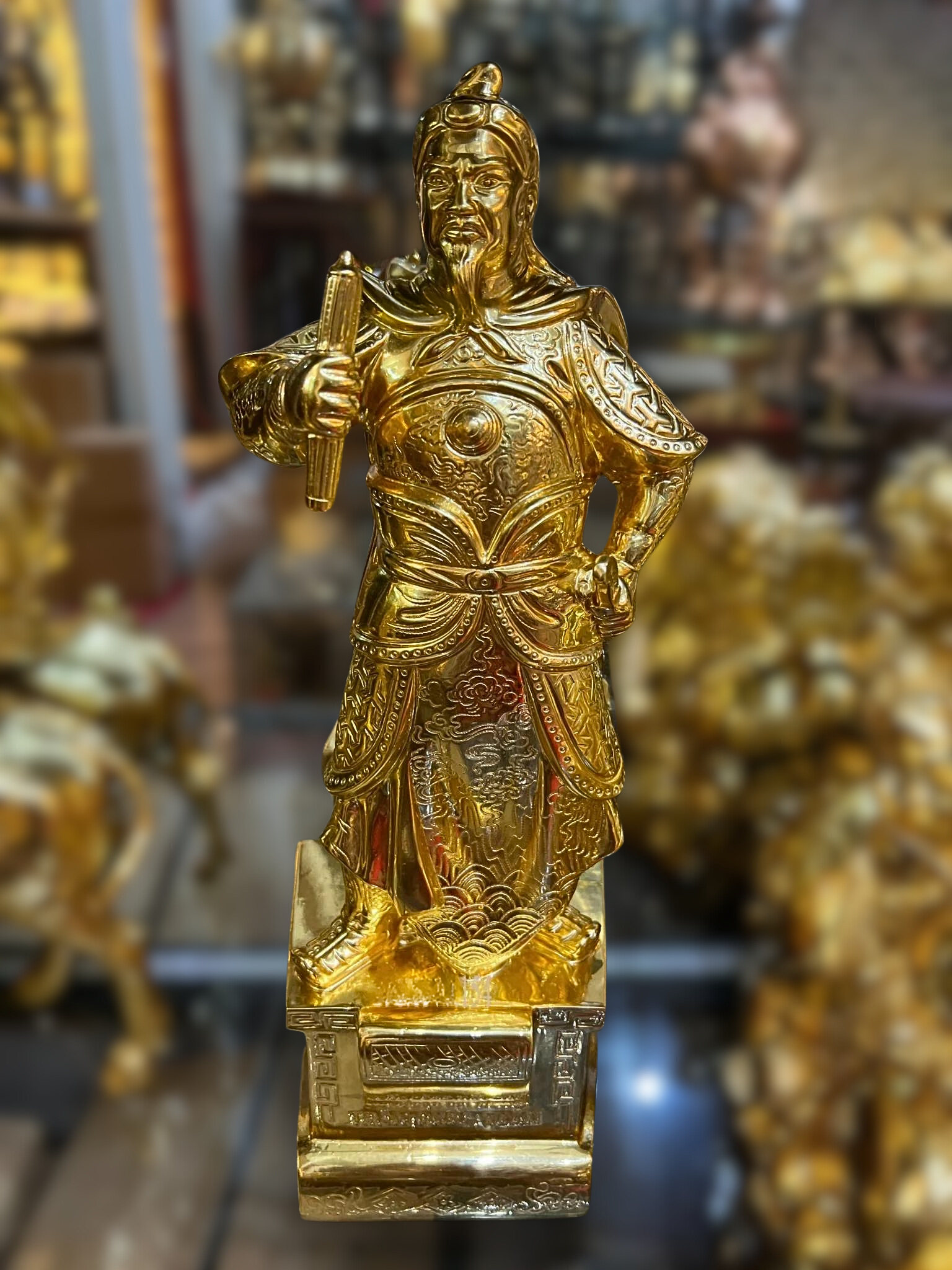 + Quà Tặng Sếp Tượng Trần Hưng Đạo được chế tác từ đồng cao cấp có giá trị cao và được xử lý bề mặt bằng lớp phủ bảo vệ tránh oxi hóa nhưng theo thời gian nhiều năm có thể bị tác động bởi các yếu tố bên ngoài nên cần lưu ý tránh đặt tượng nơi ánh sáng mặt trời chiếu vào trực tiếp, nơi bụi bẩn, ẩm ướt.