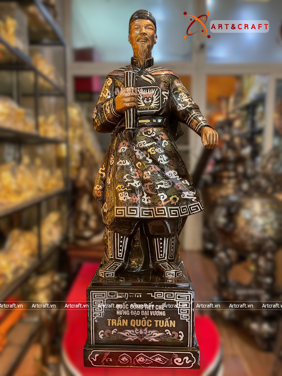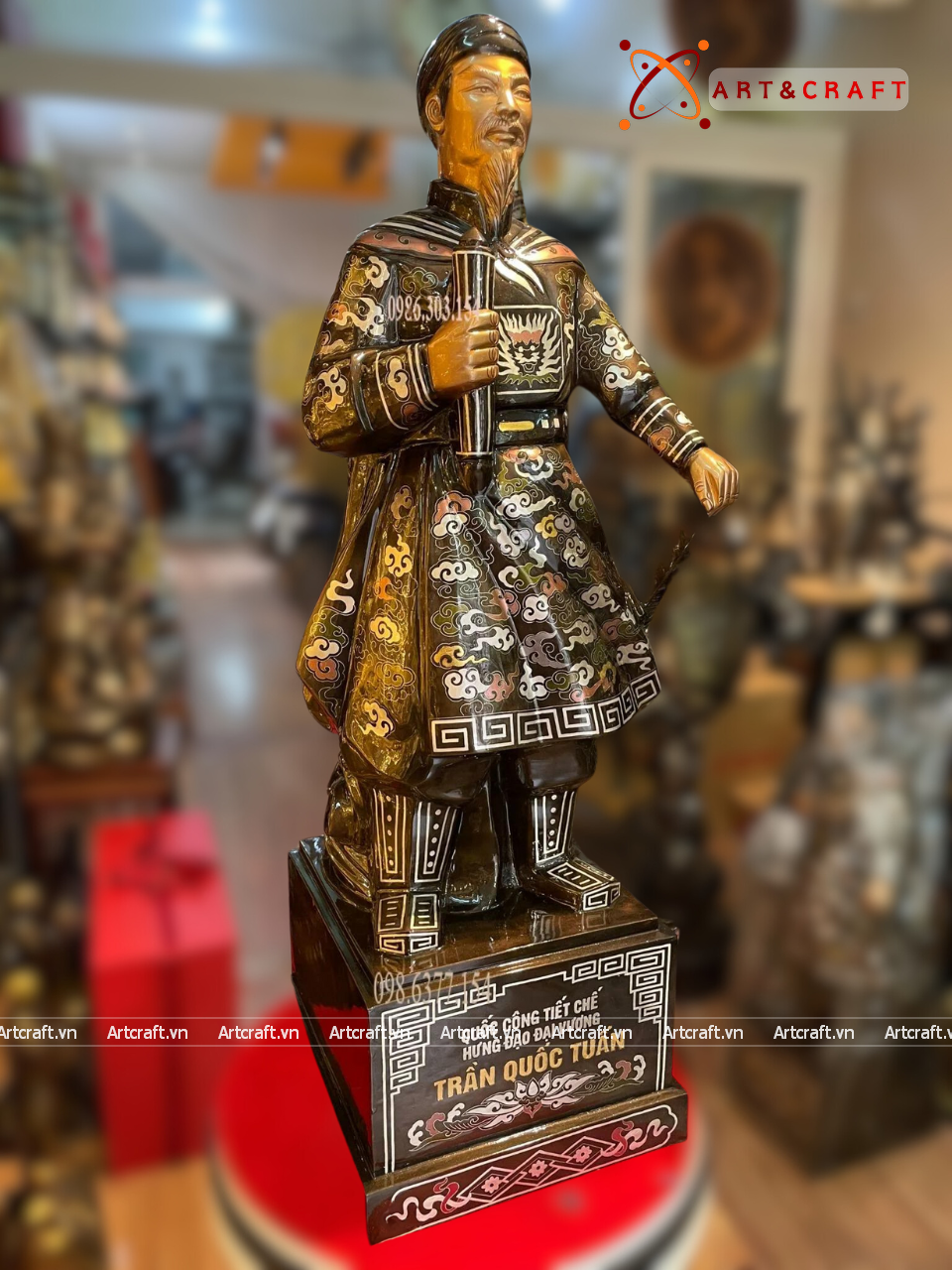 + Quà Tặng Sếp Tượng Trần Hưng Đạo được chế tác từ đồng cao cấp có giá trị cao và được xử lý bề mặt bằng lớp phủ bảo vệ tránh oxi hóa nhưng theo thời gian nhiều năm có thể bị tác động bởi các yếu tố bên ngoài nên cần lưu ý tránh đặt tượng nơi ánh sáng mặt trời chiếu vào trực tiếp, nơi bụi bẩn, ẩm ướt.