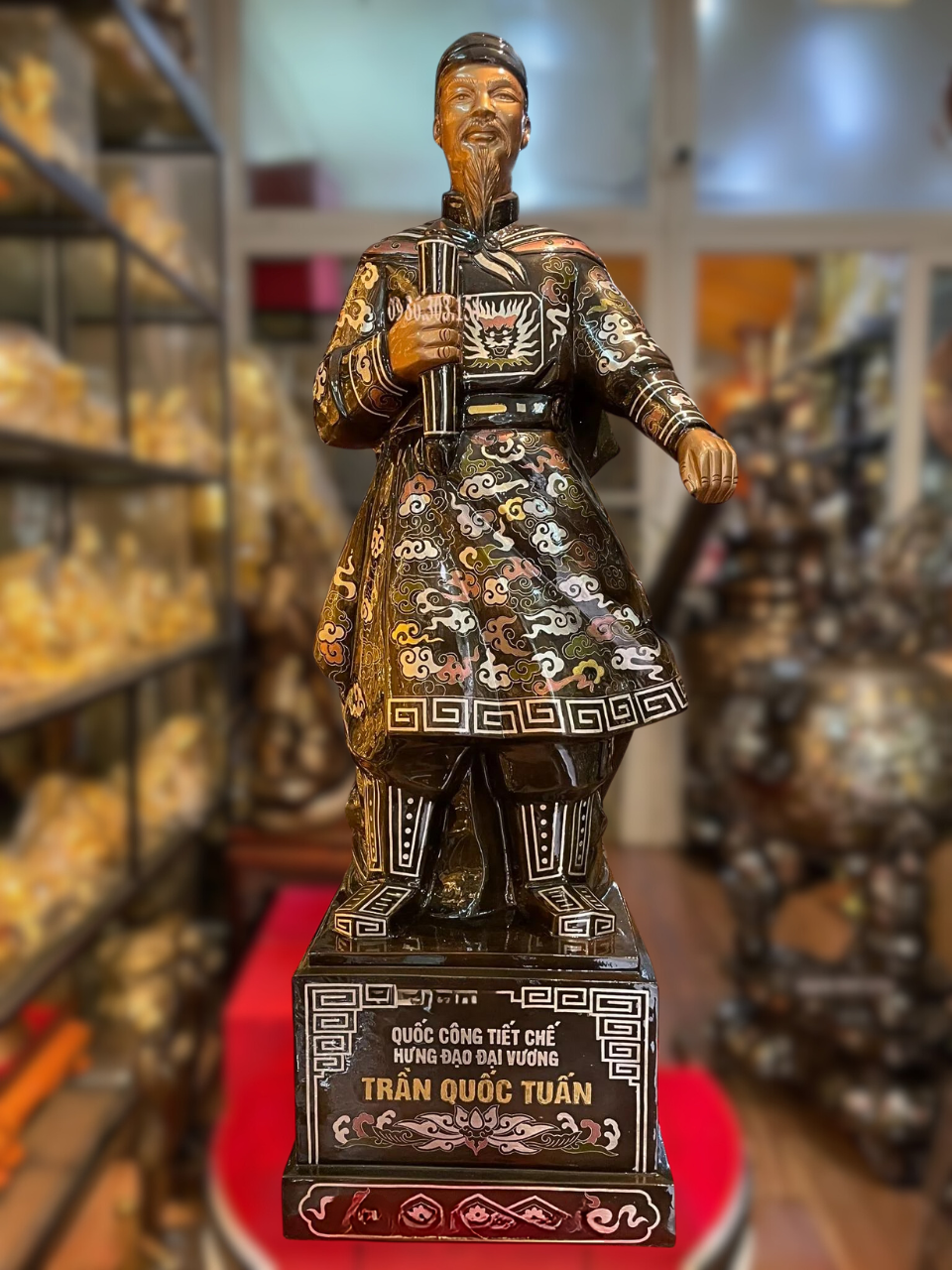 + Đặt tại kệ trưng bày tượng: Tượng Trần Hưng Đạo thương được đặt tại kệ trưng bày tượng để làm tăng tính sang trọng cho căn phòng, cũng là tính cách, tinh thần của gia chủ người trưng bày tượng.