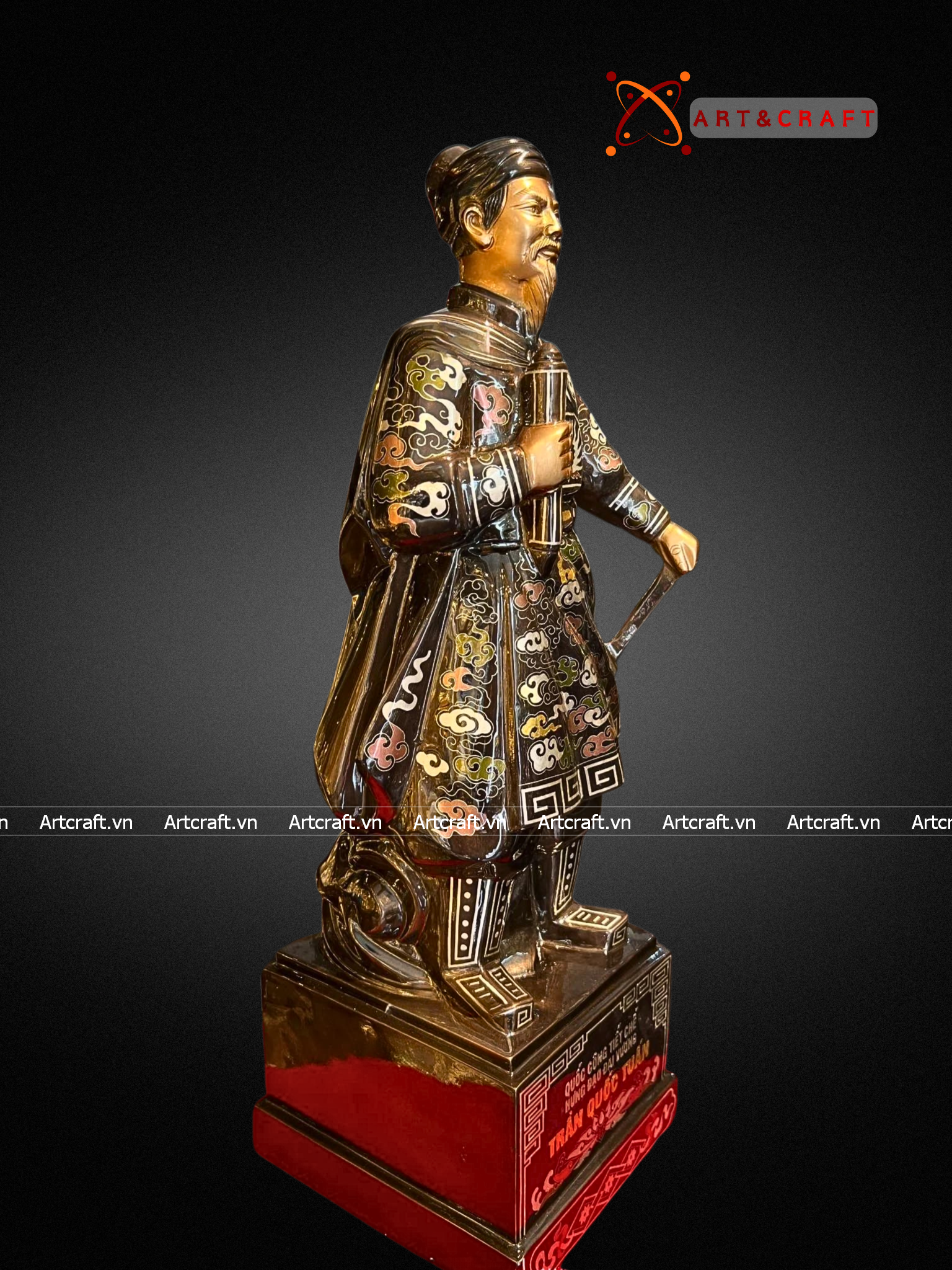 - Họa tiết tinh xảo: Quà Tặng Sếp Tượng Trần Hưng Đạo được đúc chạm tinh xảo, tạo nên hình tượng một nhà quân sự, nhà chính trị vĩ đại của dân tộc ta. Một số tượng còn được mạ vàng, chạm khảm rất tinh xảo và giá trị làm tăng thêm vẻ đẹp của sản phẩm.